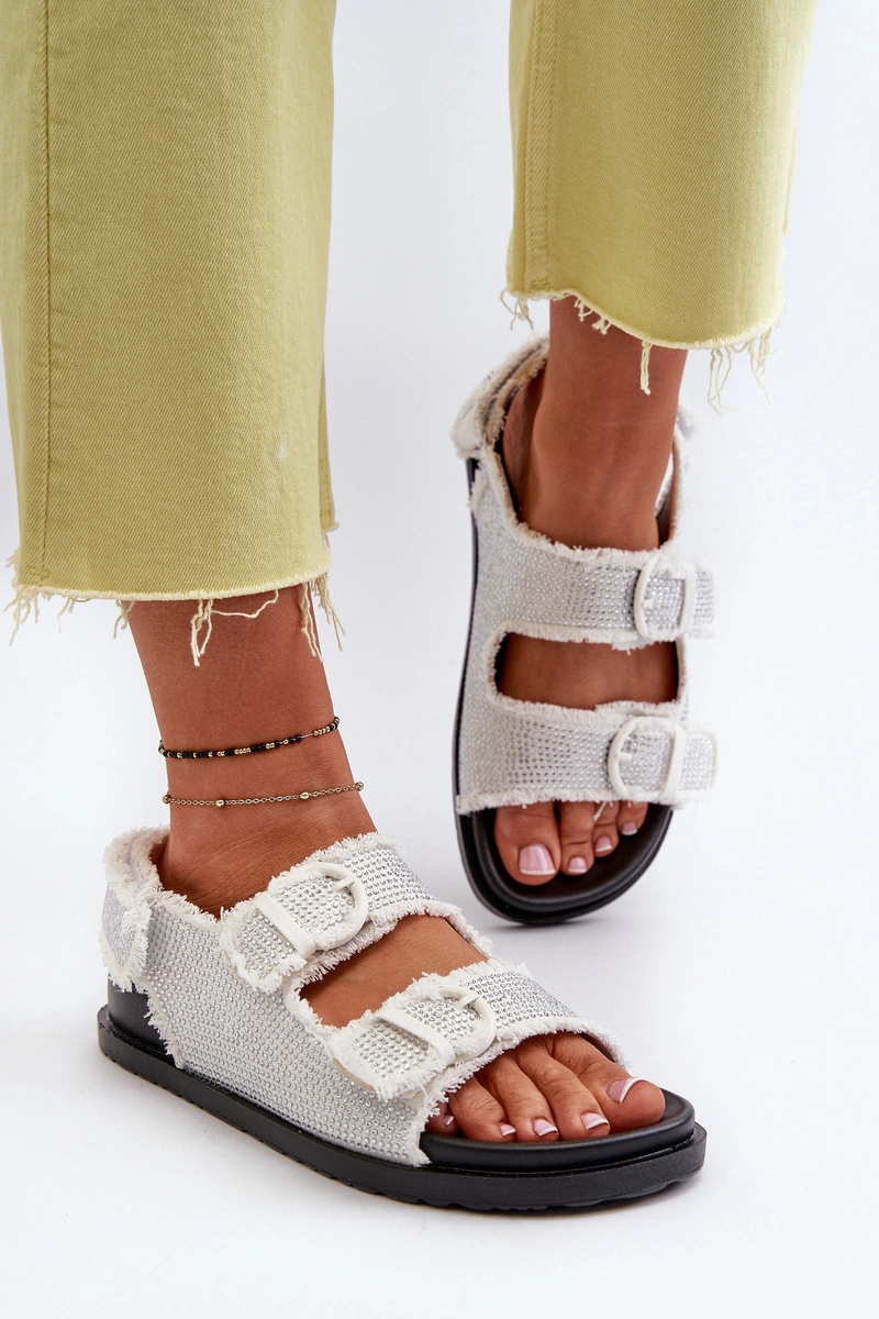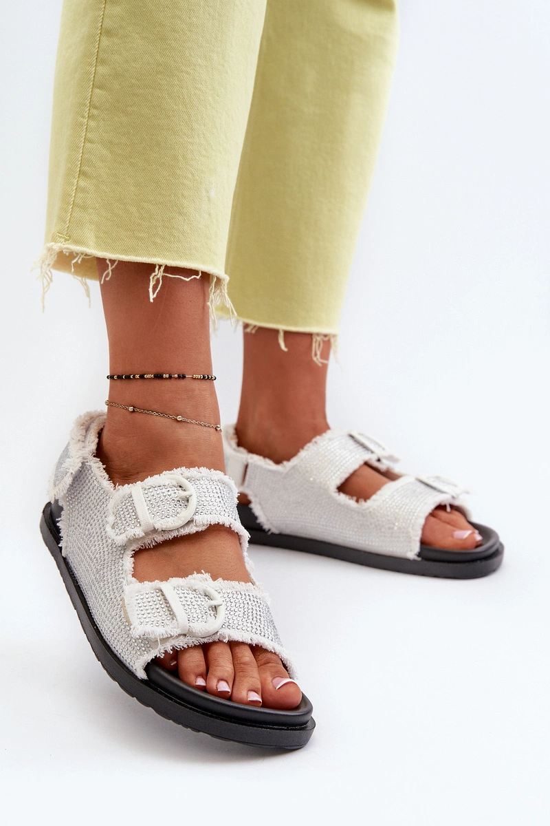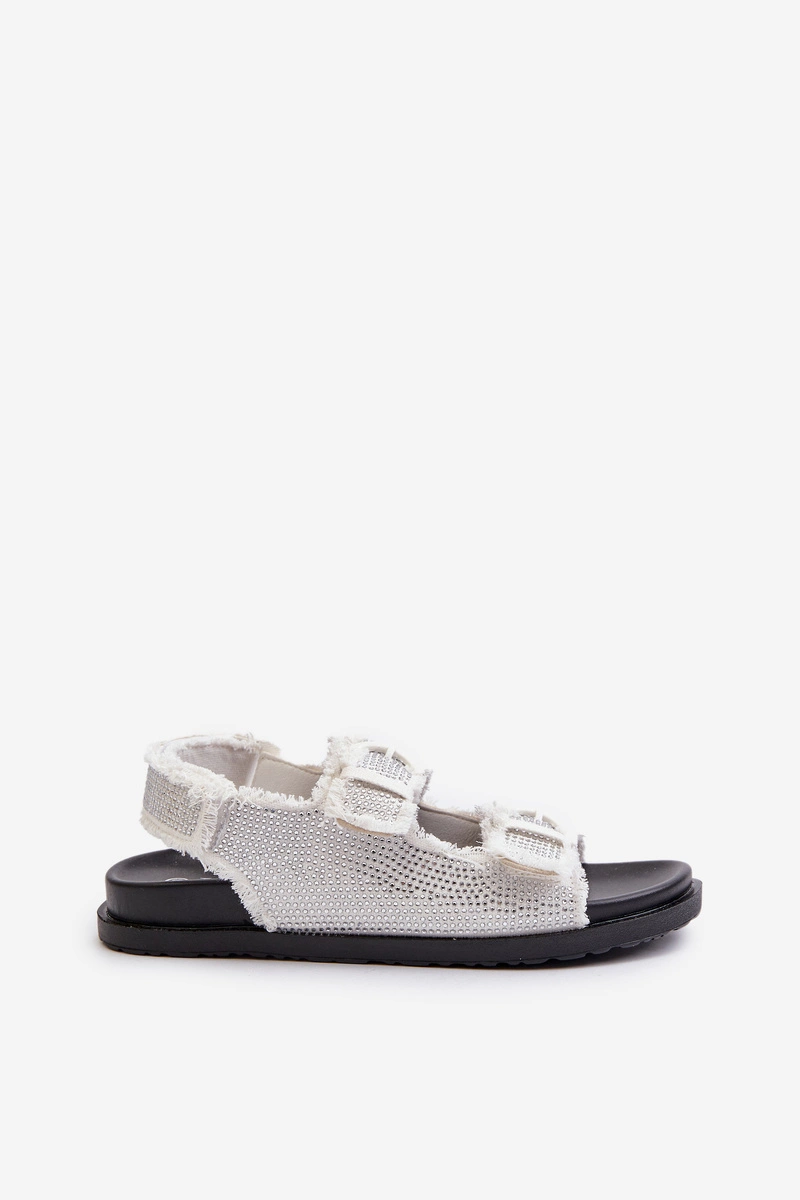 Jeansowe Zdobione Sandały Damskie Białe Irmale