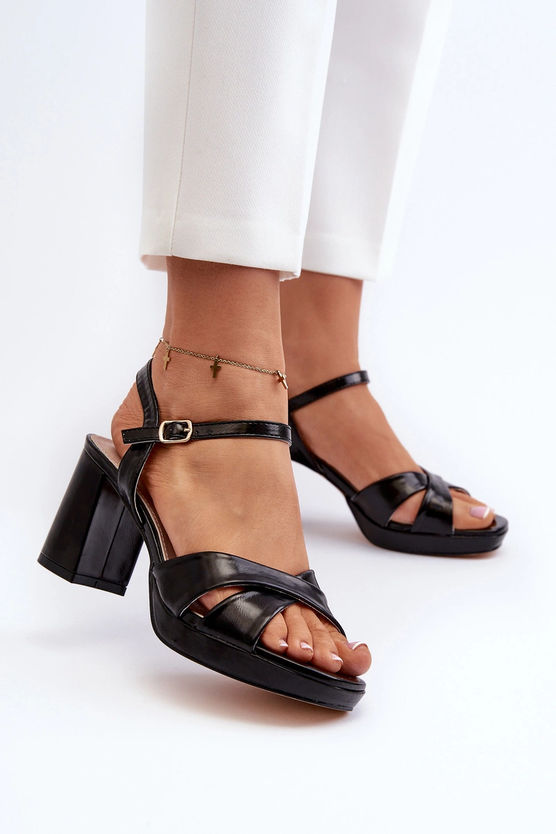 Sandały Damskie Na Obcasie Słupku Eko Skórzane Czarne Jatine