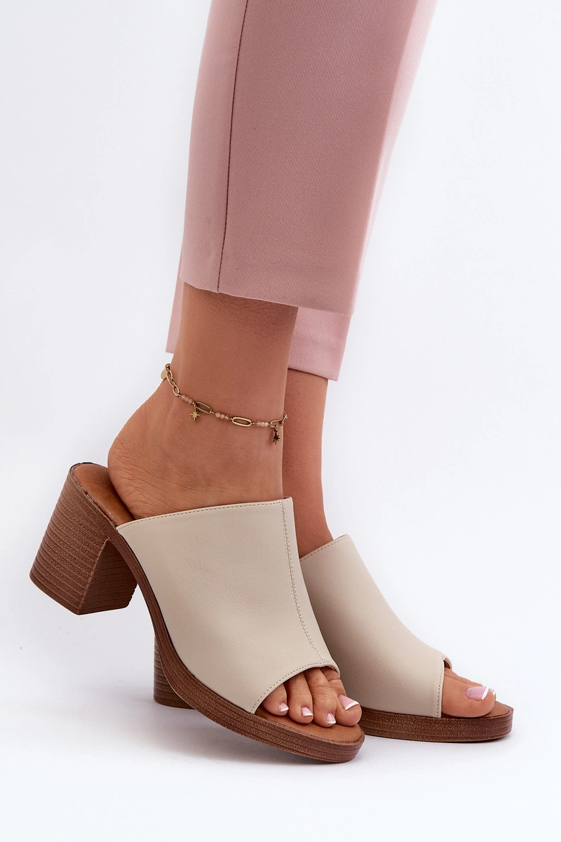 Eleganckie Lekkie Klapki Damskie Na Obcasie Beżowe Varnila