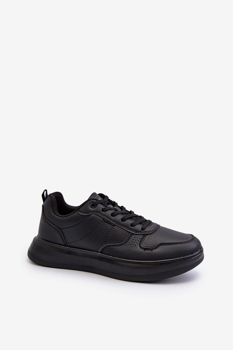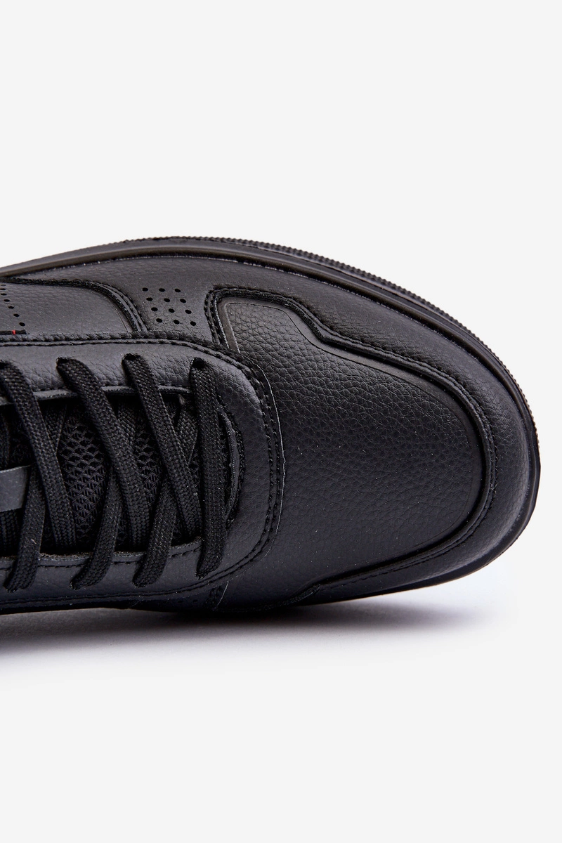 Lekkie Sneakersy Męskie Na Platformie Z Eko Skóry Czarne Uziran