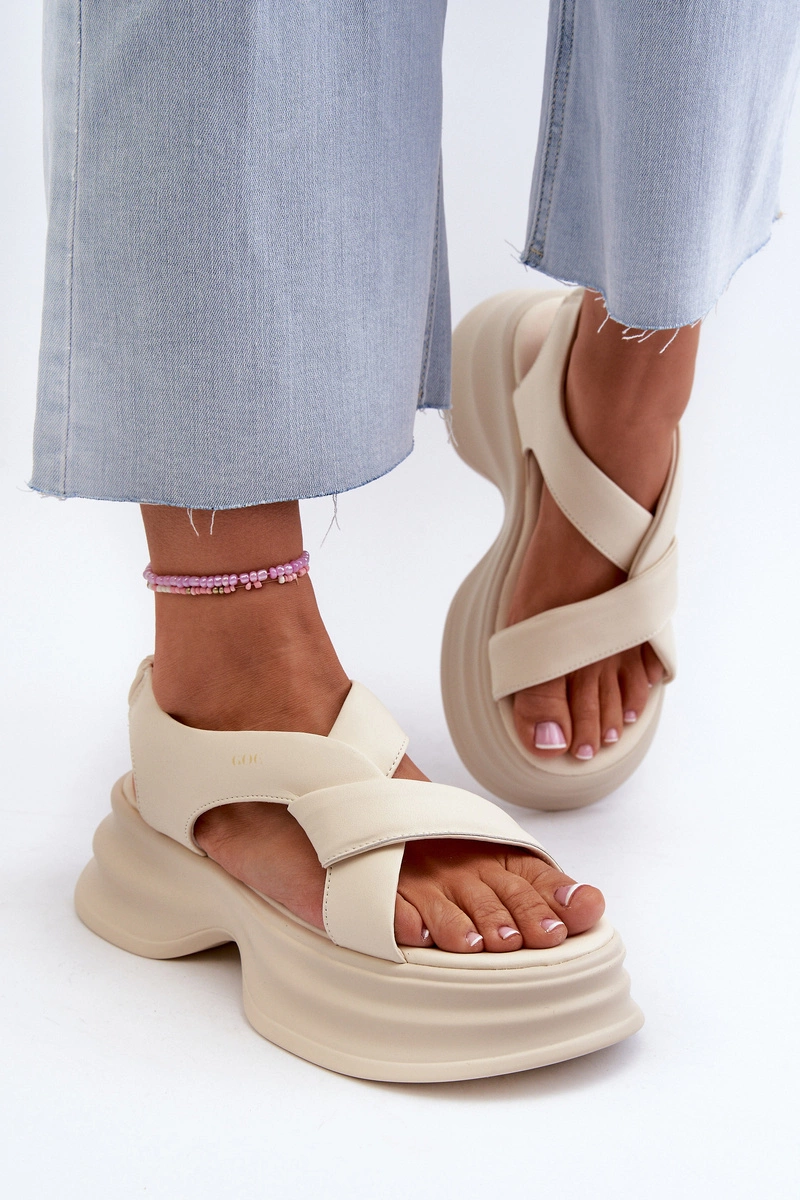 Skórzane Sandały Damskie Na Masywnej Podeszwie Jasnobeżowe GOE NN2N4105
