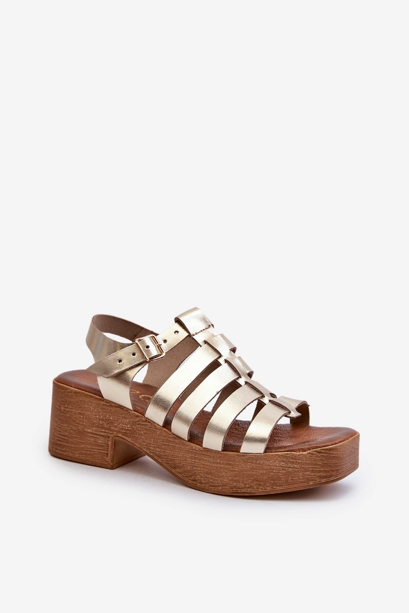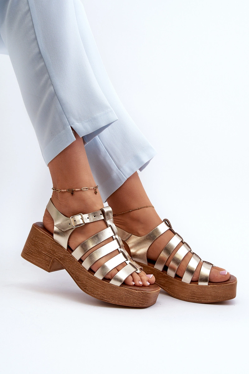 Zazoo 40410 Skórzane Sandały Damskie Złote