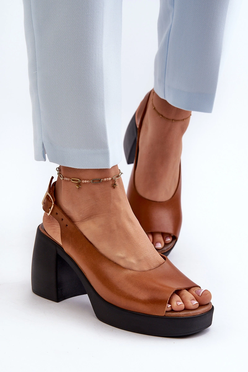 Zazoo 40376 Skórzane Sandały Na Masywnym Obcasie Brązowe