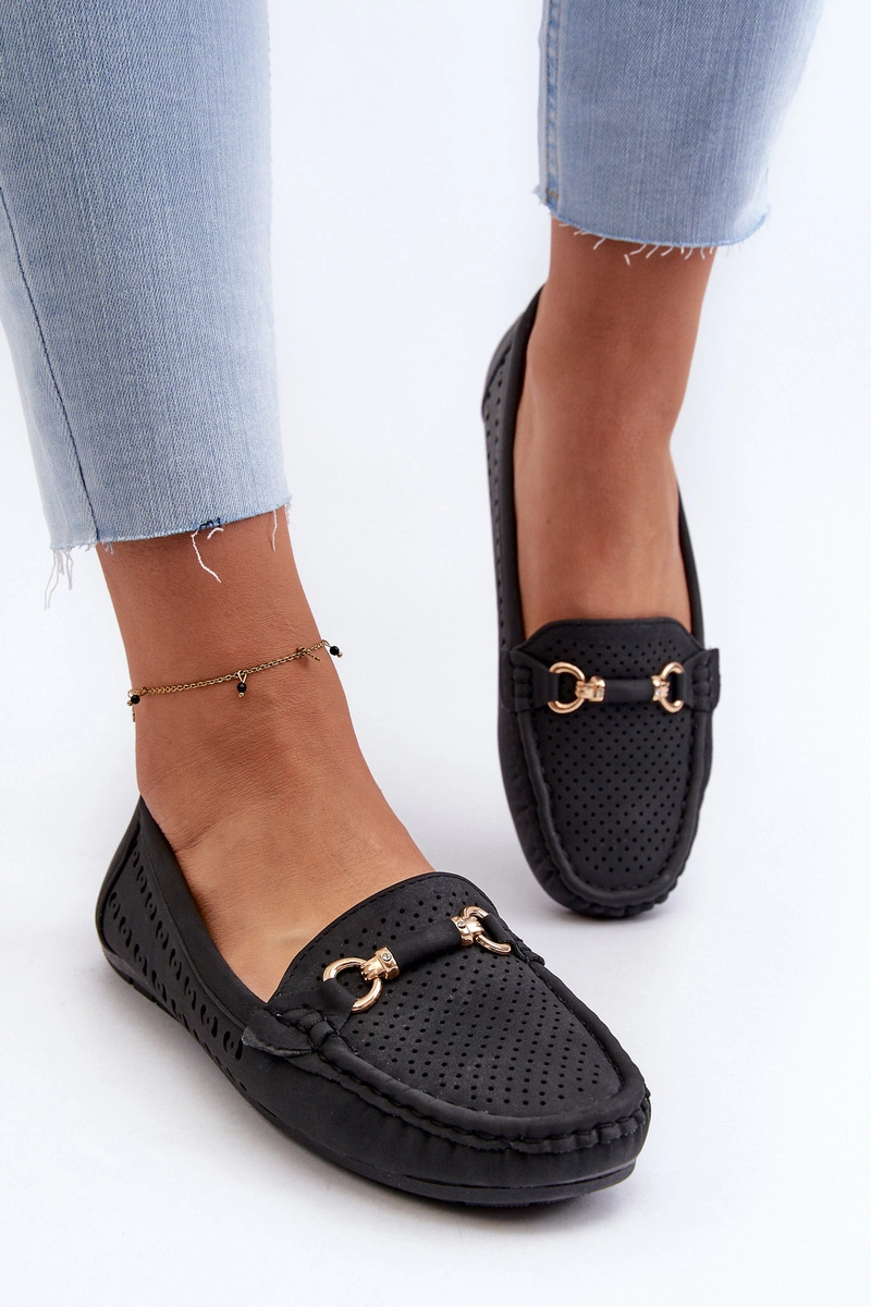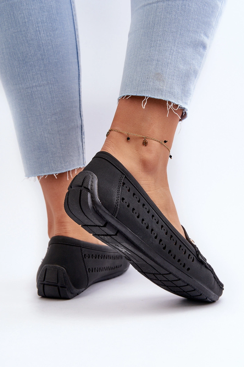 Mokasyny Damskie Ażurowe Z Ozdobą Czarne Kaydance