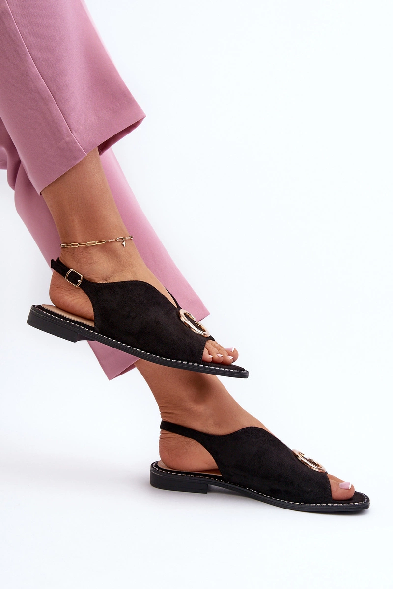 Eleganckie Sandały Damskie Z Ozdobą Eko Zamszowe S.Barski KV27-058 Czarne