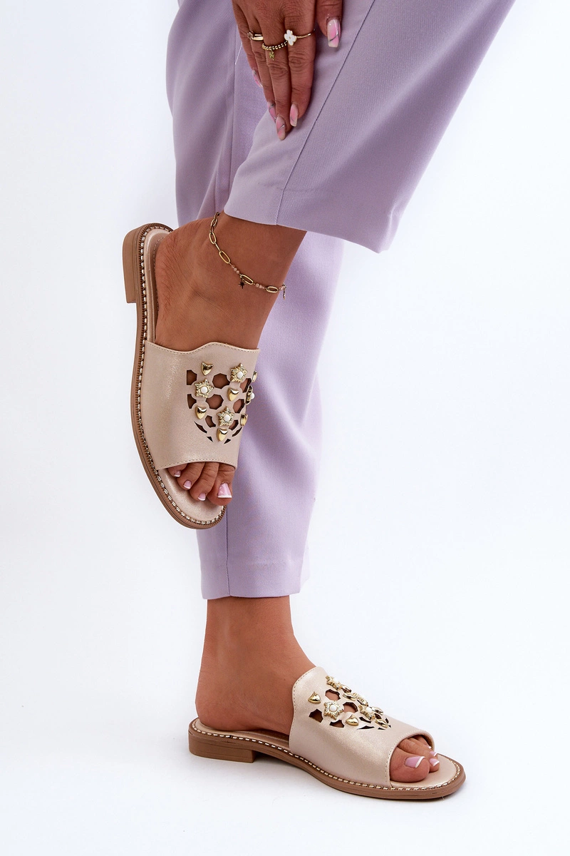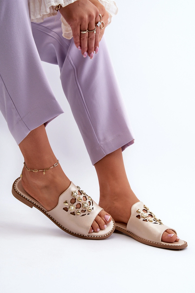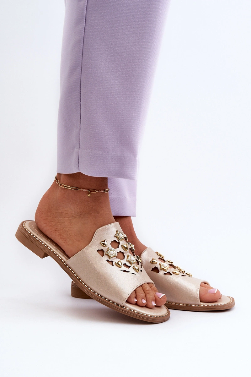 Błyszczące Klapki Damskie Z Ozdobami S.Barski KV27-063 Złote