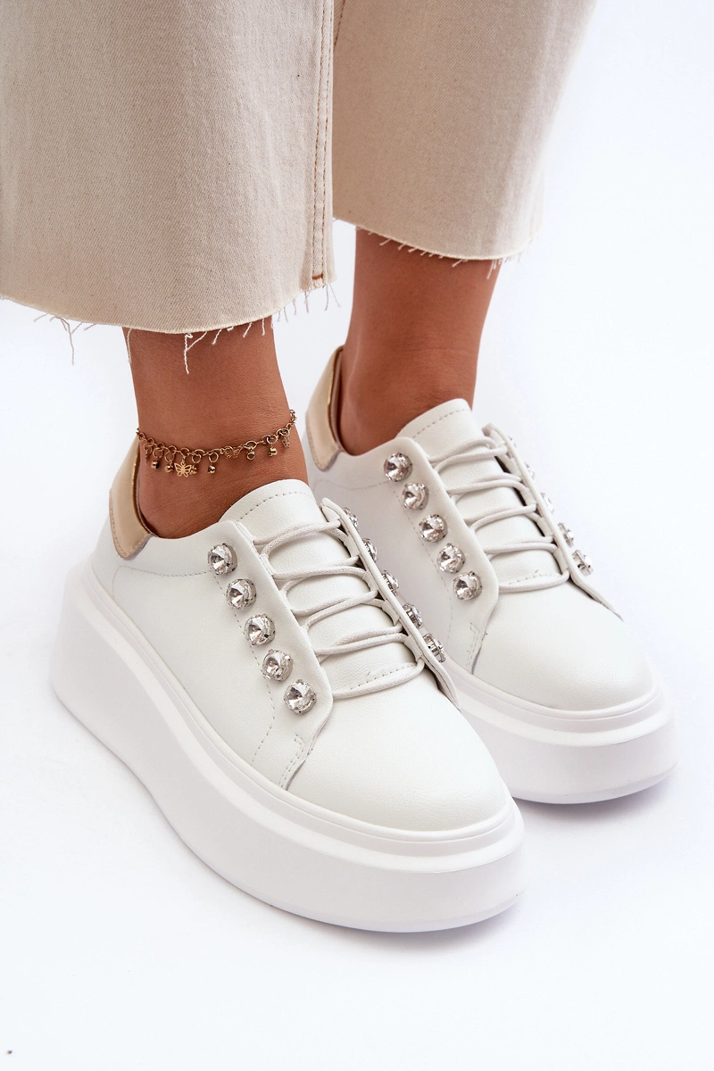 Skórzane Sneakersy Damskie Na Masywnej Platformie Białe S.Barski LR628