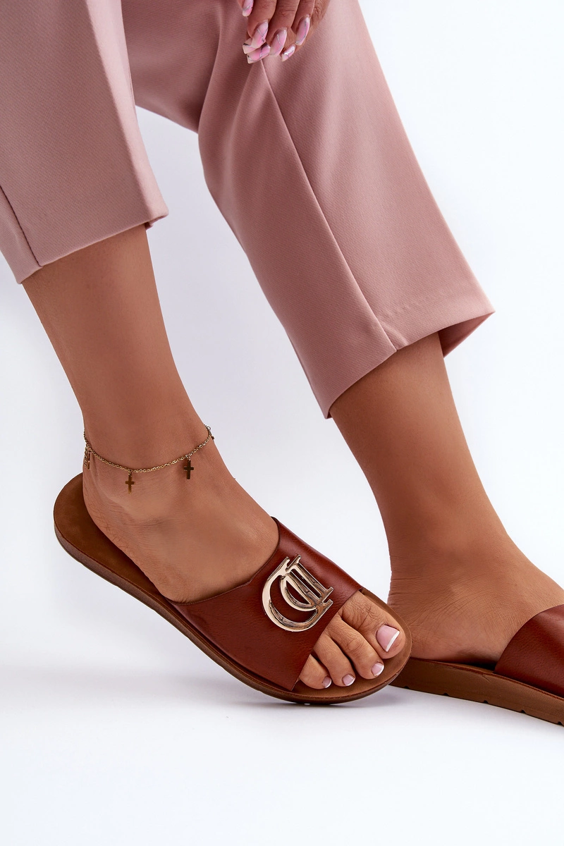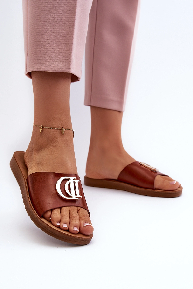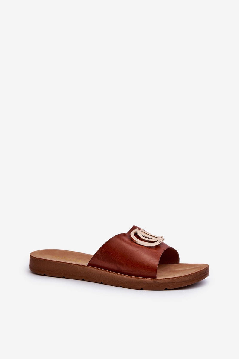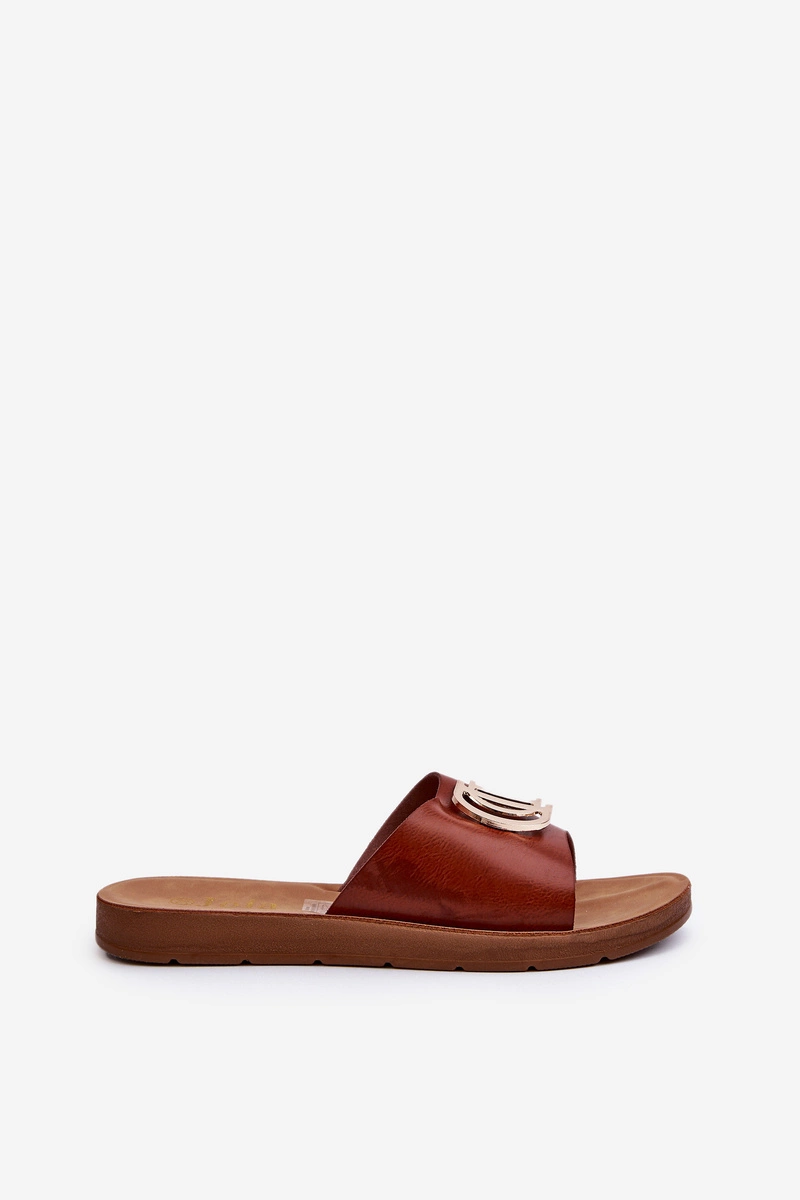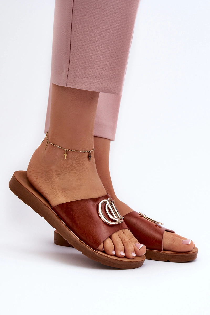 Klapki Damskie Na Płaskiej Podeszwie Z Ozdobą Brązowe Amoonia