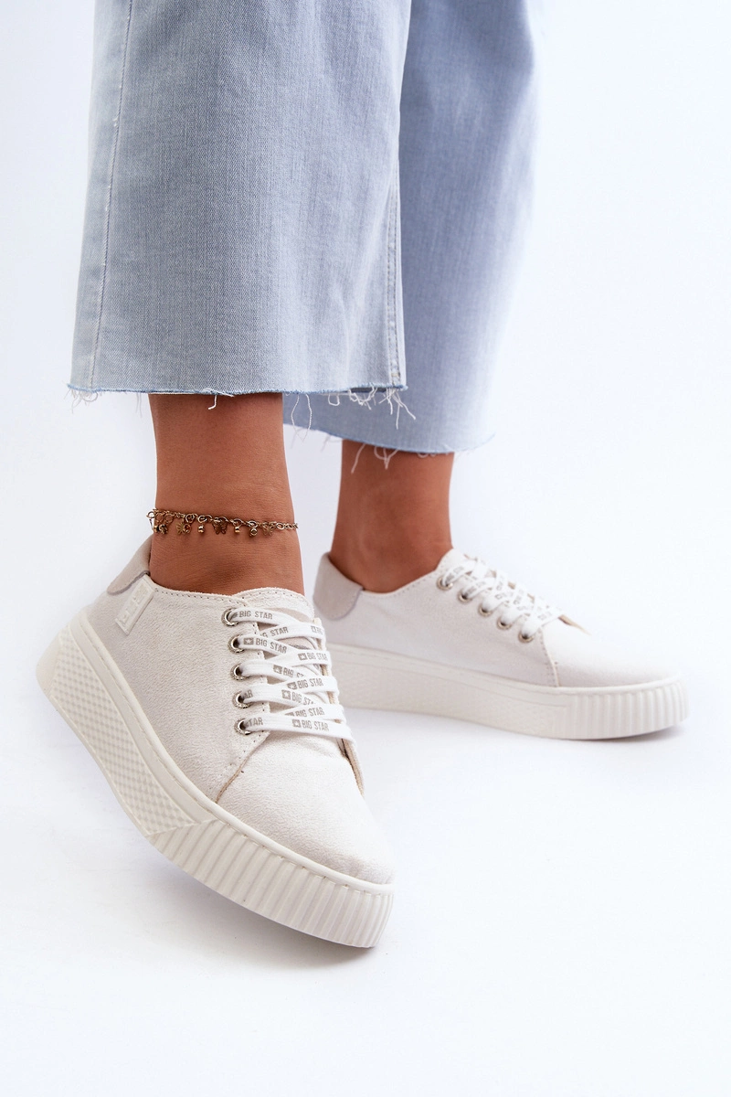 Damskie trampki od marki Big Star wykonane z eko skóry. Osadzone na grubej platformie z gumowego tworzywa. Noski zaokrąglone. Model ten posiada wyjątkową wkładkę MEMORY FOAM SYSTEM, która zapamiętuje kształt stopy, zapewnia doskonałe dopasowanie, absorbuje wstrząsy oraz jest odporna na odkształcenia. Dodatkowo struktura pianki pozwala na odparowywanie wilgoci i regulację temperatury. Ten niezwykle stylowy fason koniecznie musi się znaleźć w Twojej wiosenno-letniej garderobie! Przy wyborze rozmiaru prosimy sugerować się tabelą rozmiarów.