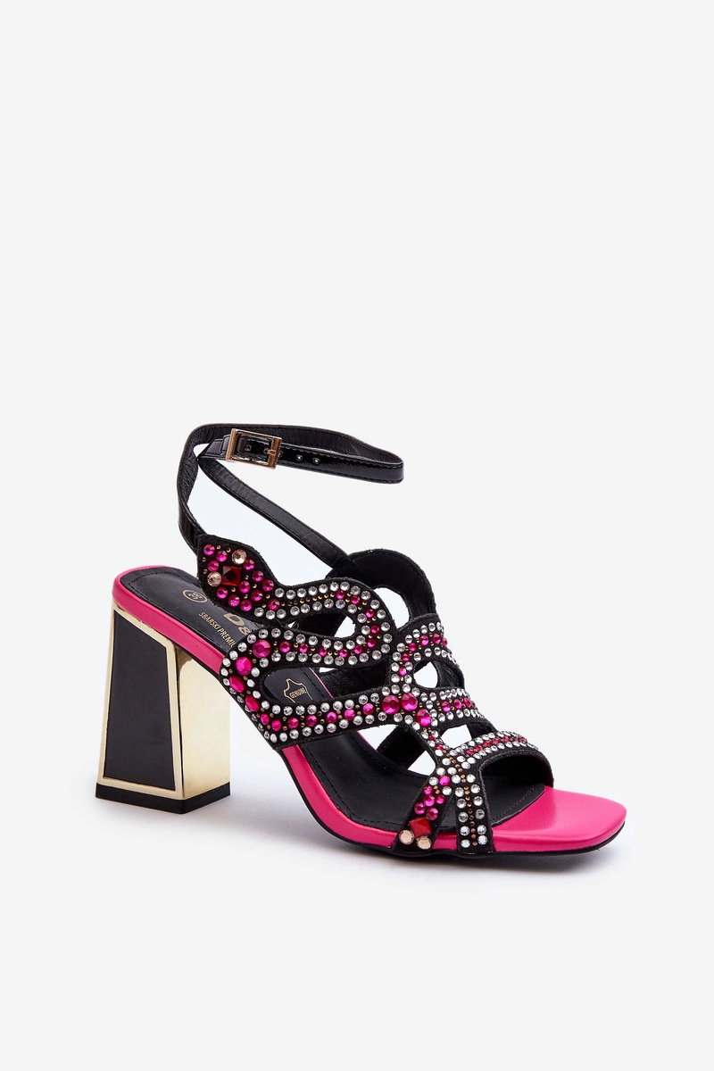 Eleganckie sandały damskie ze zdobieniem. Osadzone na obcasie w postaci słupka. Zapinane na regulowany pasek ze sprzączką. Miękka, skórzana wkładka zagwarantuje wygodę podczas użytkowania. Model ten z pewnością doda blasku Twojej stylizacji! Przy wyborze rozmiaru prosimy sugerować się poniższą tabelą rozmiarów.