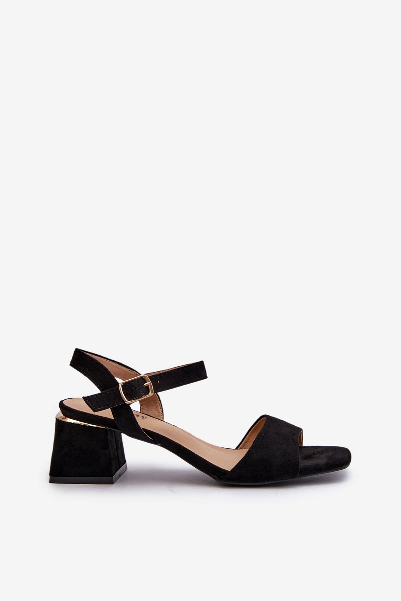 Sandały Damskie Na Klocku Z Eko Zamszu Czarne Leisha
