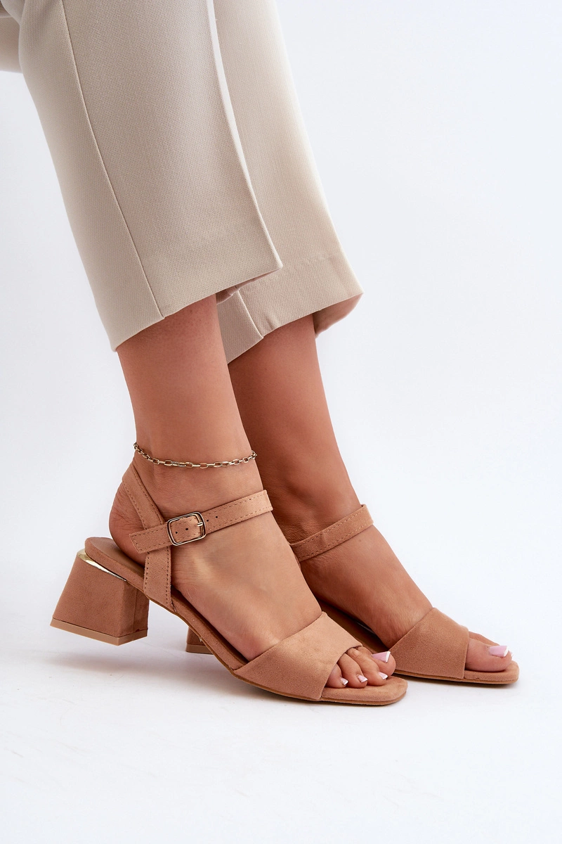 Sandały Damskie Na Klocku Z Eko Zamszu Camel Leisha