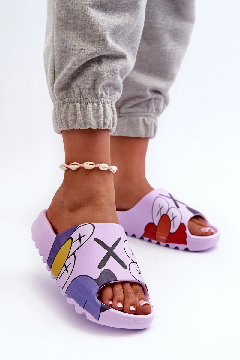 Gumowe Klapki Z Nadrukiem Fioletowe Monsters