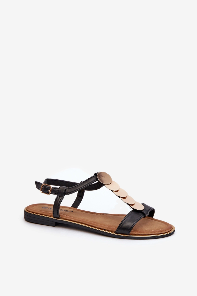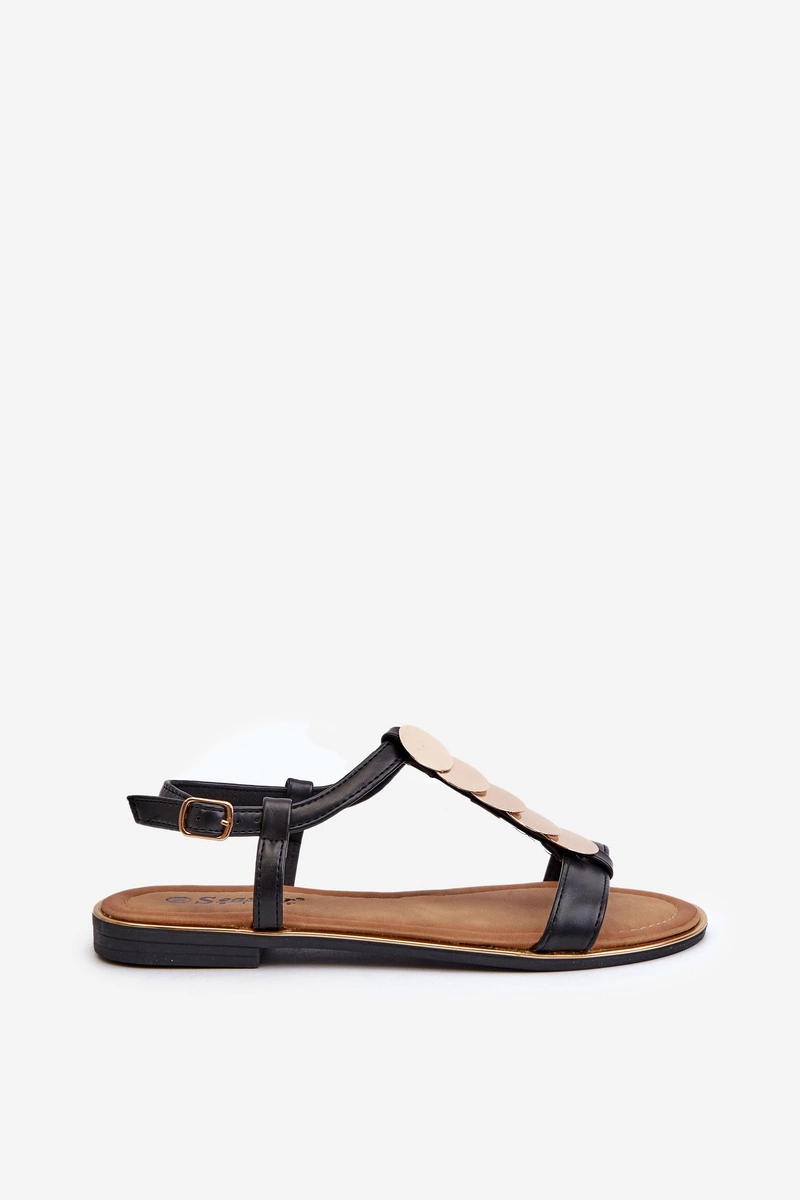 Płaskie Sandały Damskie Z Eko Skóry Czarne Jeritellia