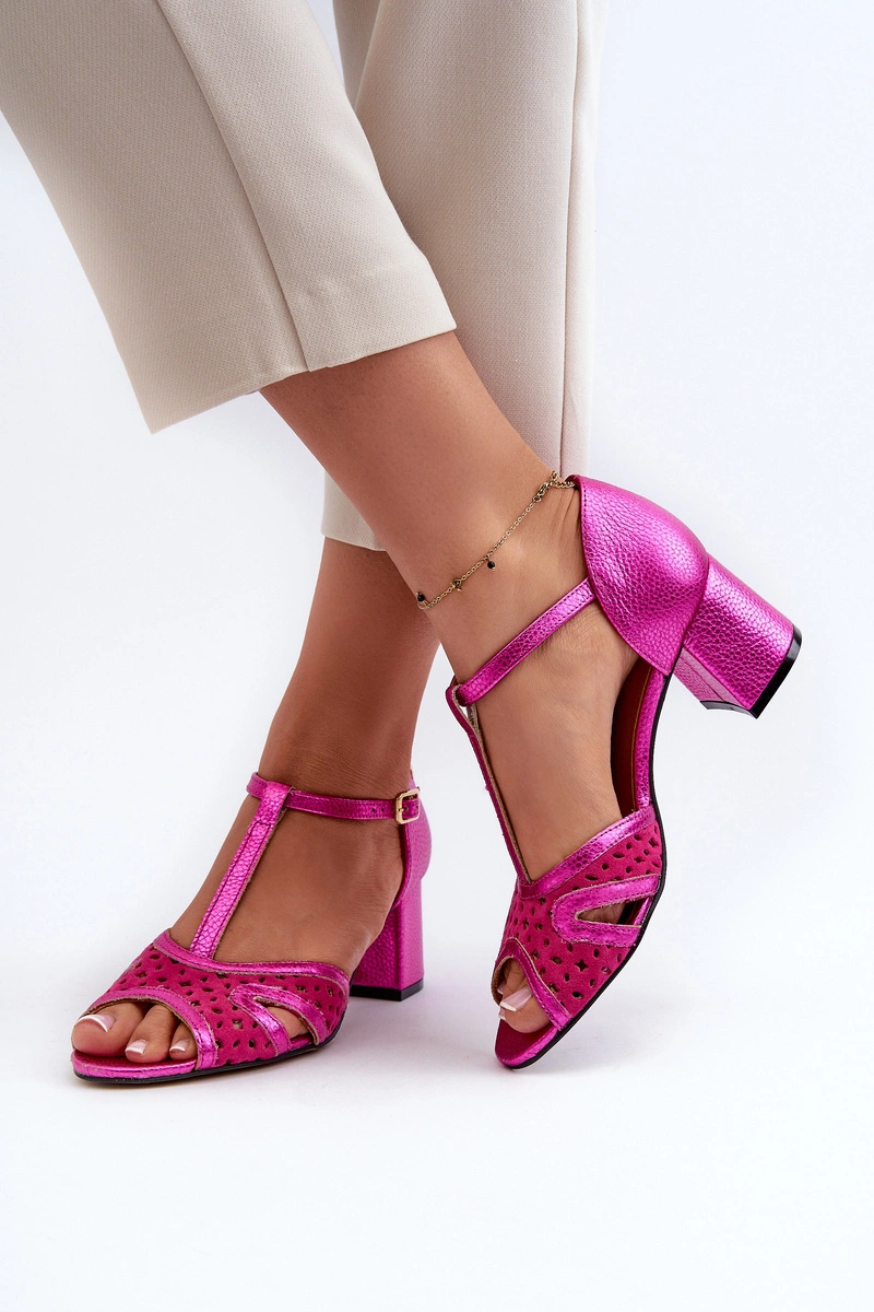 Sandały Skórzane Damskie Na Obcasie Maciejka 06551-15 Fuksja