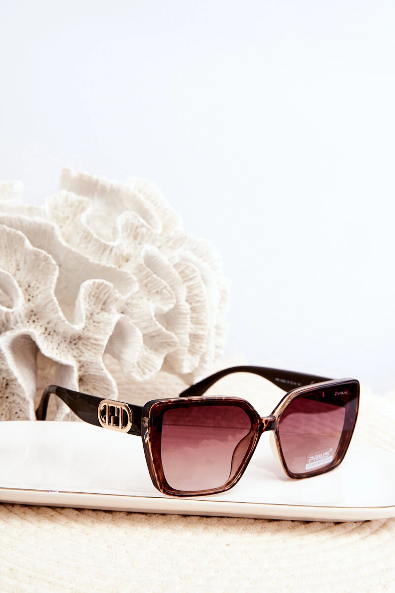 Okulary Przeciwsłoneczne Damskie Z Ozdobnym Detalem UV400 Ciemnobrązowe