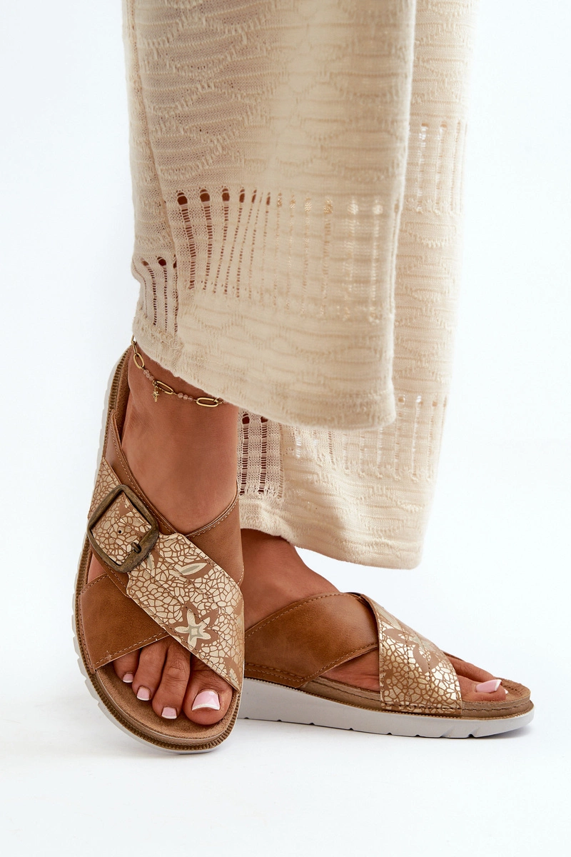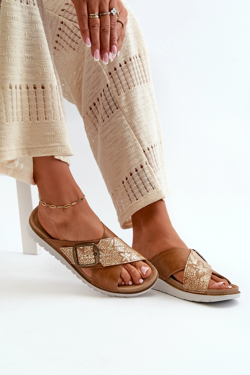 Wygodne Klapki Damskie Z Klamrą Inblu CN000032 Camel