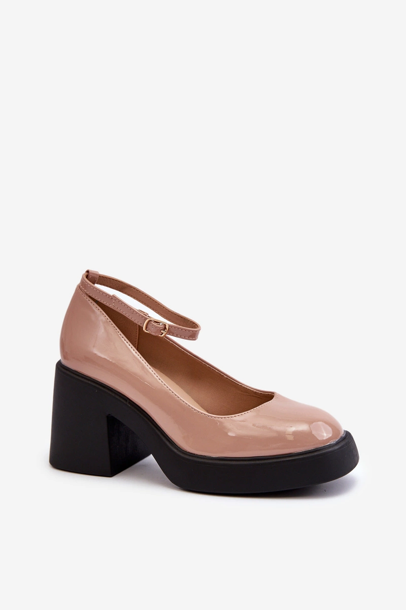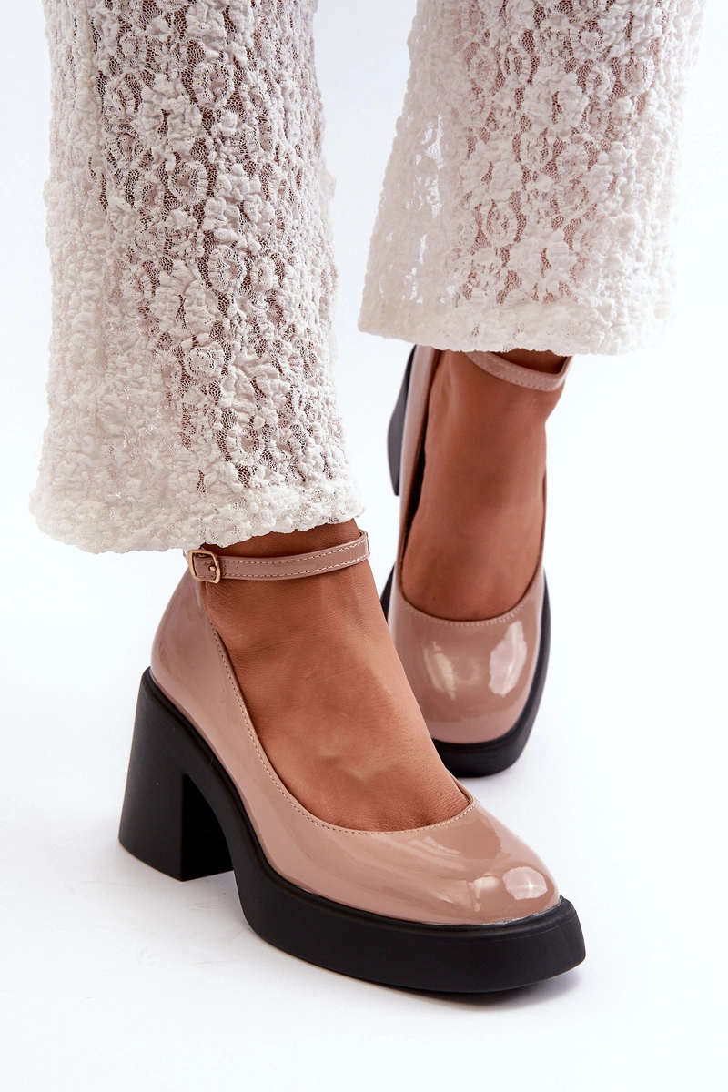 Lakierowane Czółenka Na Masywnym Obcasie Ciemnobeżowe Effiba