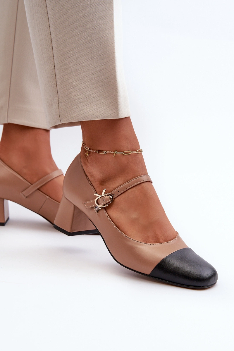 Skórzane Czółenka Damskie Laura Messi 2846 Brązowe