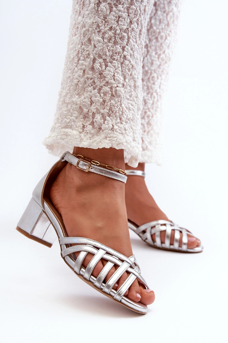 Sandały Damskie Z Eko Skóry Na Niskim Obcasie Srebrne Monsha