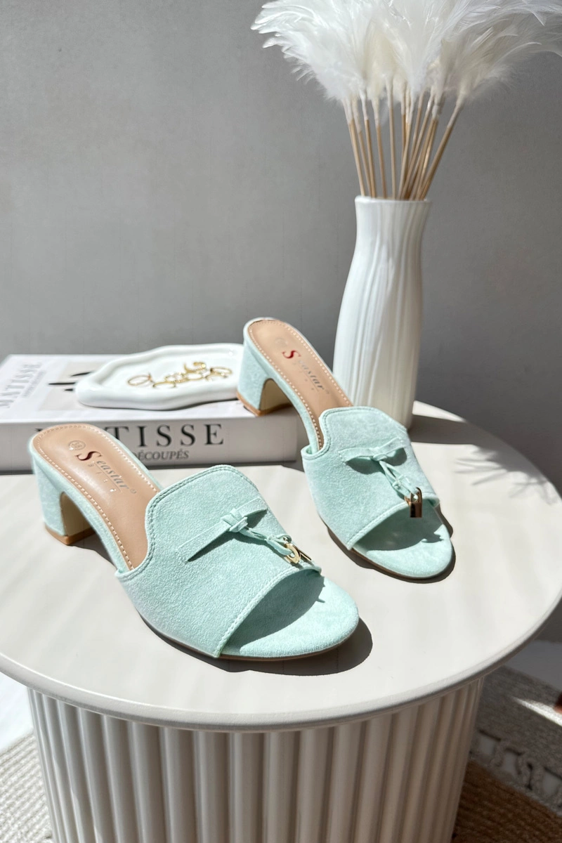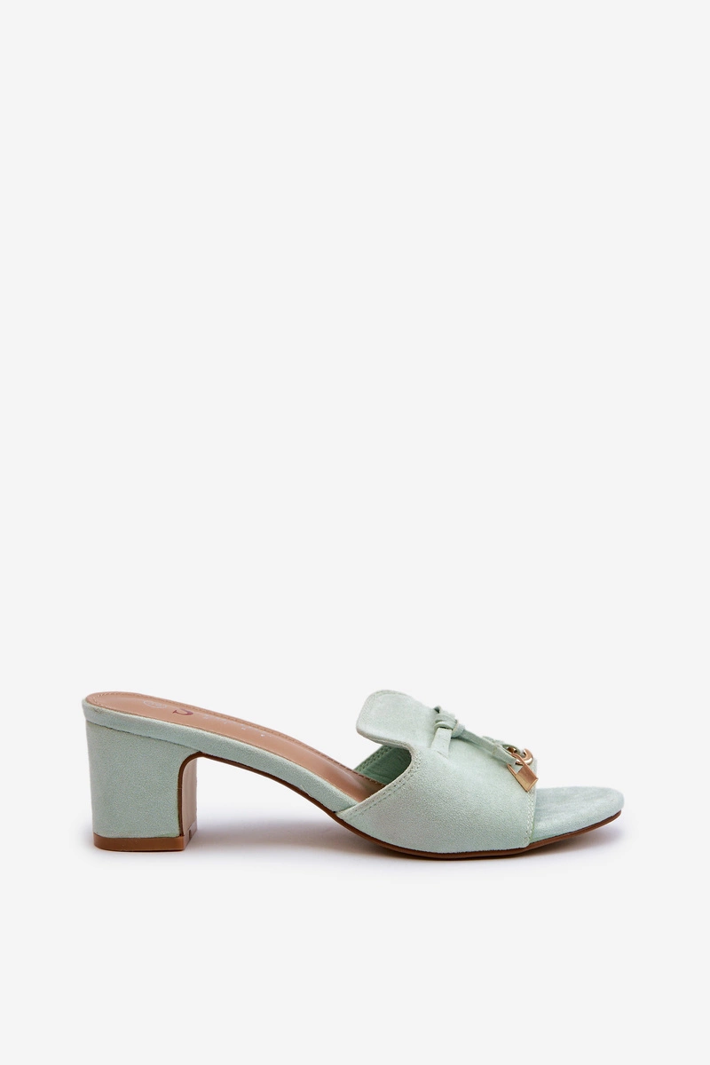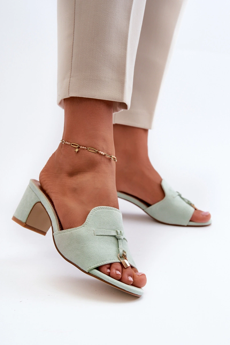 Klapki Damskie Z Eko Zamszu Na Obcasie Miętowe Jemenna