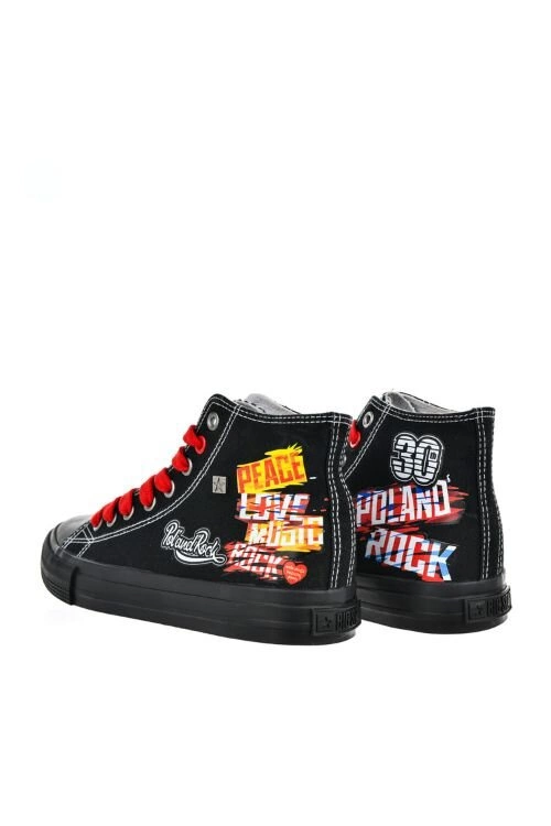 Wykonane z wysokiej jakości materiałów, te buty gwarantują całodzienny komfort. Inspirowany Pol’and’Rock Festival design wyróżnia się żywymi kolorami i wzorami. Logo 30-lecia festiwalu na boku buta podkreśla ich unikalność. Gumowa podeszwa zapewnia trwałość i dobrą przyczepność, idealne na ulice i koncerty. Wkładka z wentylacją utrzymuje świeżość stóp przez wiele godzin. Sznurowanie gwarantuje dopasowanie, a wysoki krój dodaje stylu i chroni kostkę.