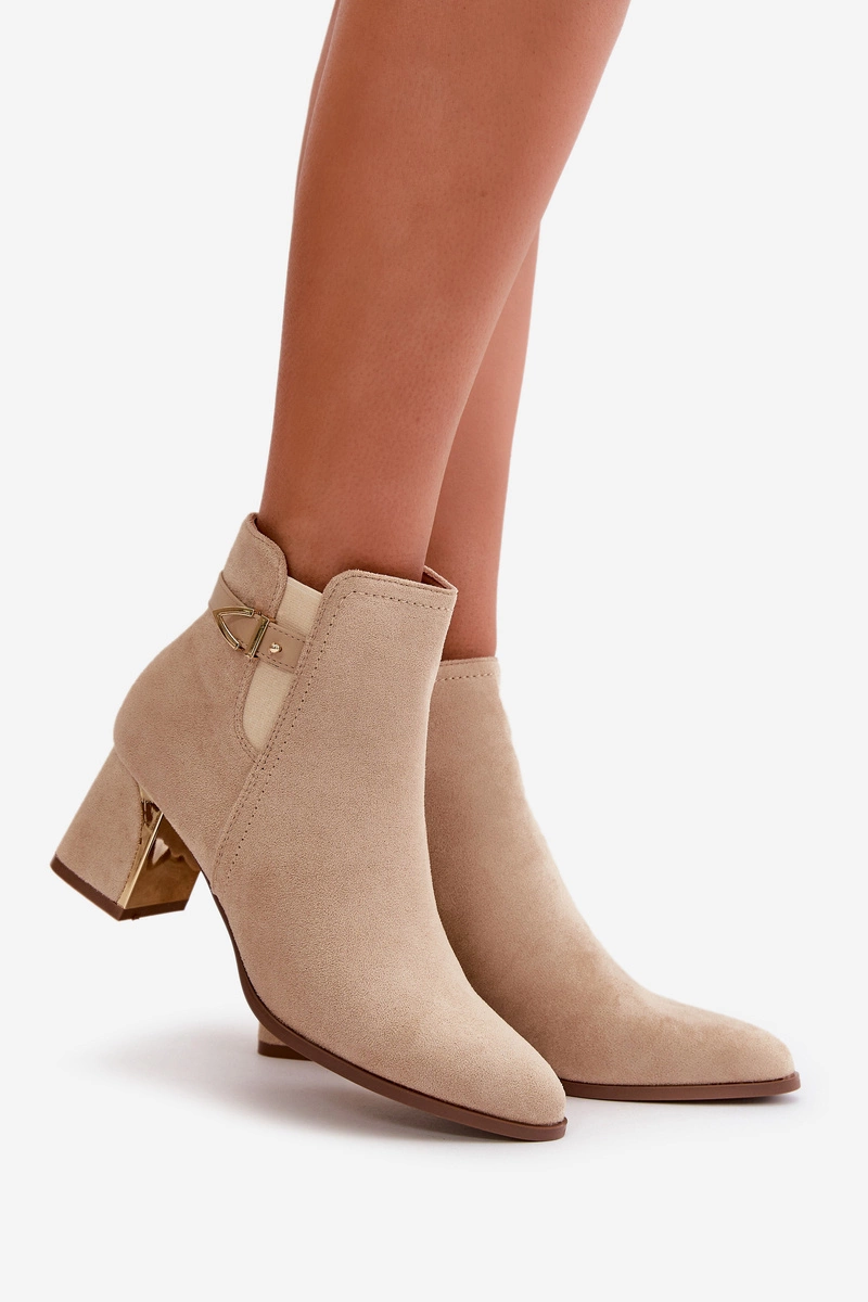 Botki Damskie Na Słupku Zapinane Na Zamek Eko Zamszowe Jasnobeżowe Bonucci