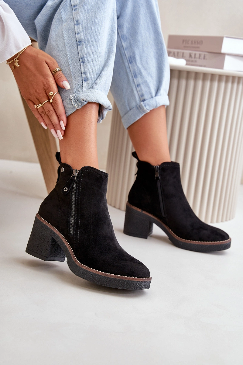 Ocieplane Botki Damskie Na Słupku Z Eko Zamszu Czarne Velarilla