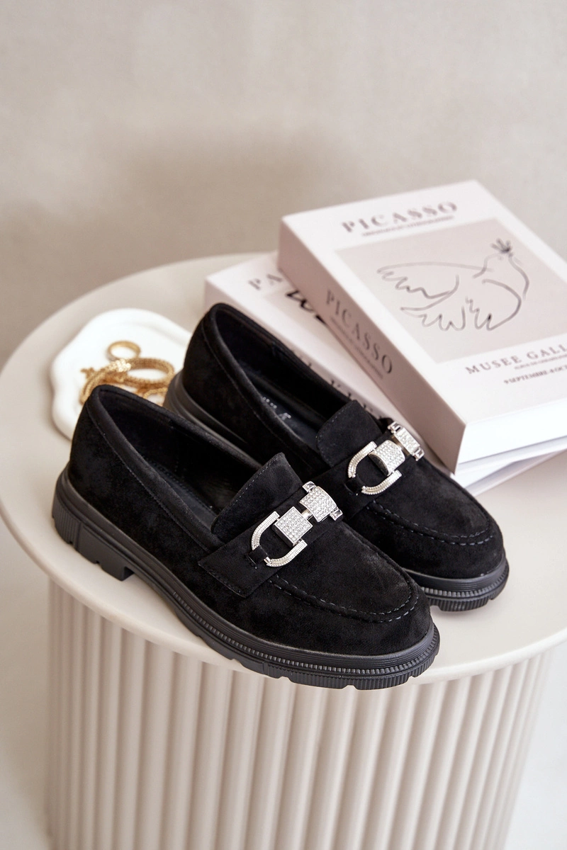 Mokasyny Damskie Eko Zamszowe Z Ozdobą Czarne Wistera