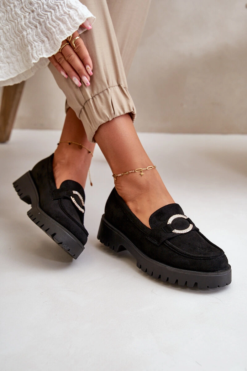Damskie Eko Zamszowe Mokasyny Z Błyszczącym Detalem Czarne Avellina