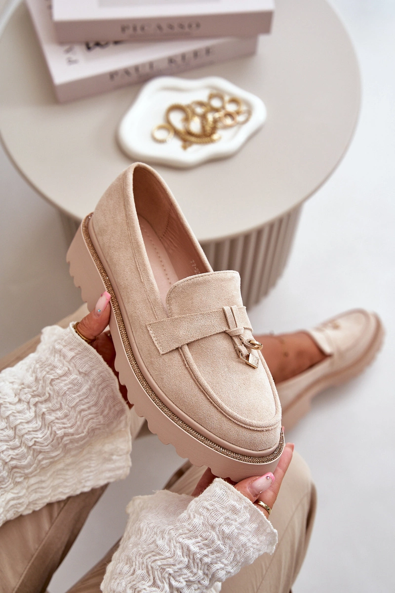 Damskie Mokasyny Eko Zamszowe Ze Zdobieniem Jasnobeżowe Verindalle