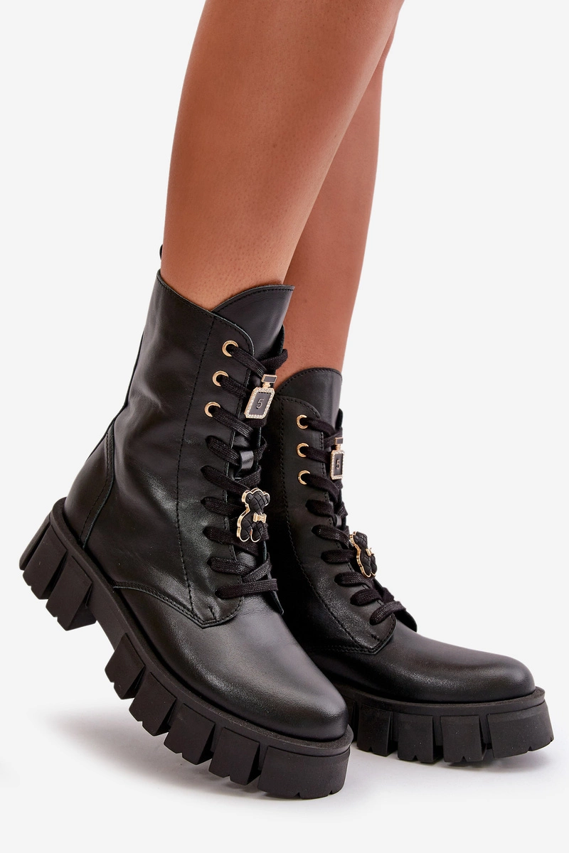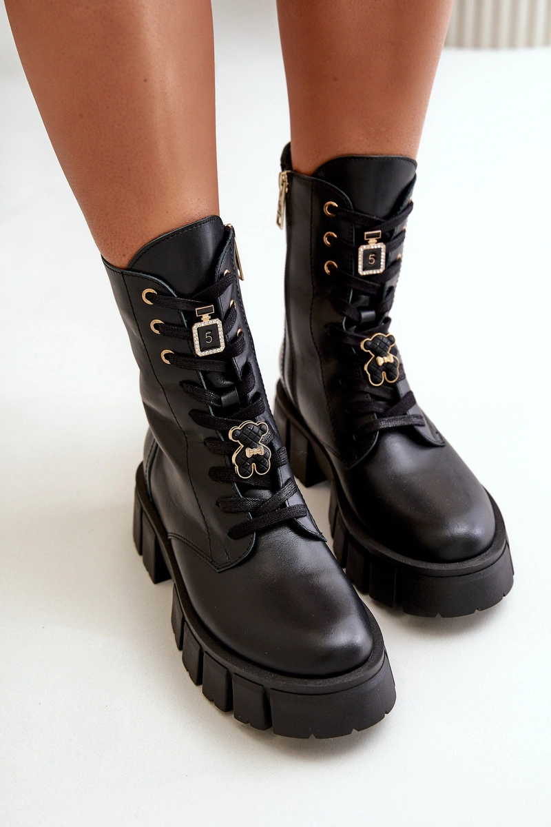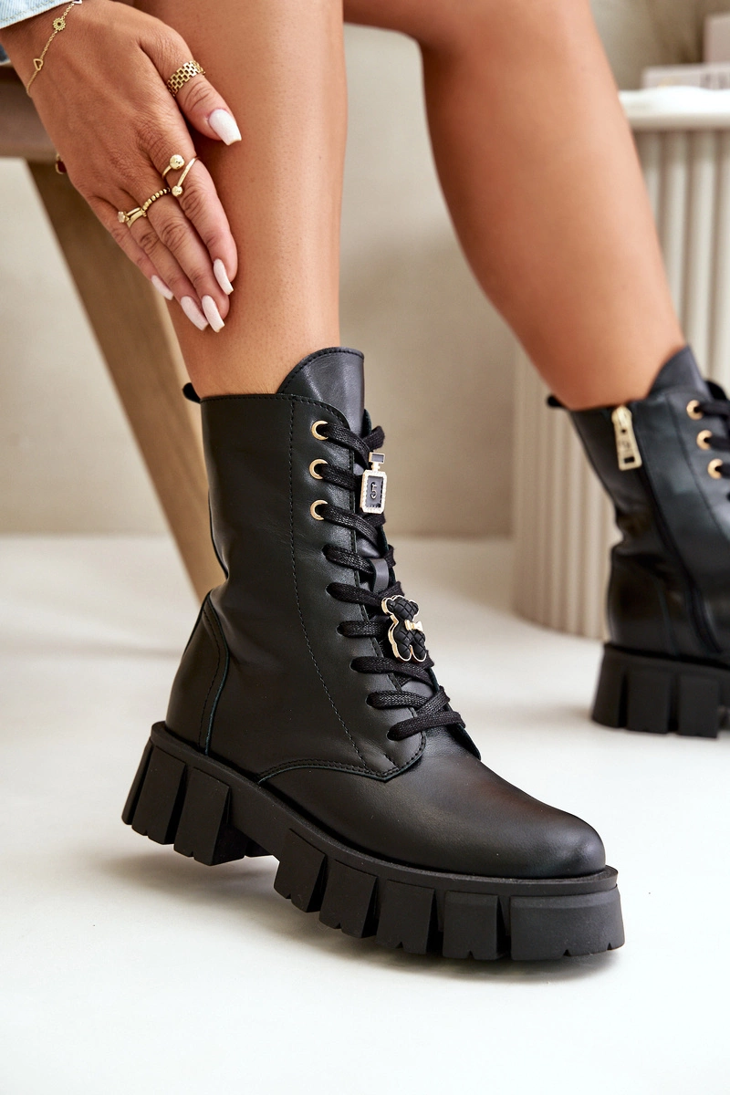 Damskie Skórzane Botki Workery Z Przypinkami CheBello 4247 Czarne