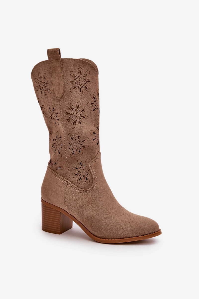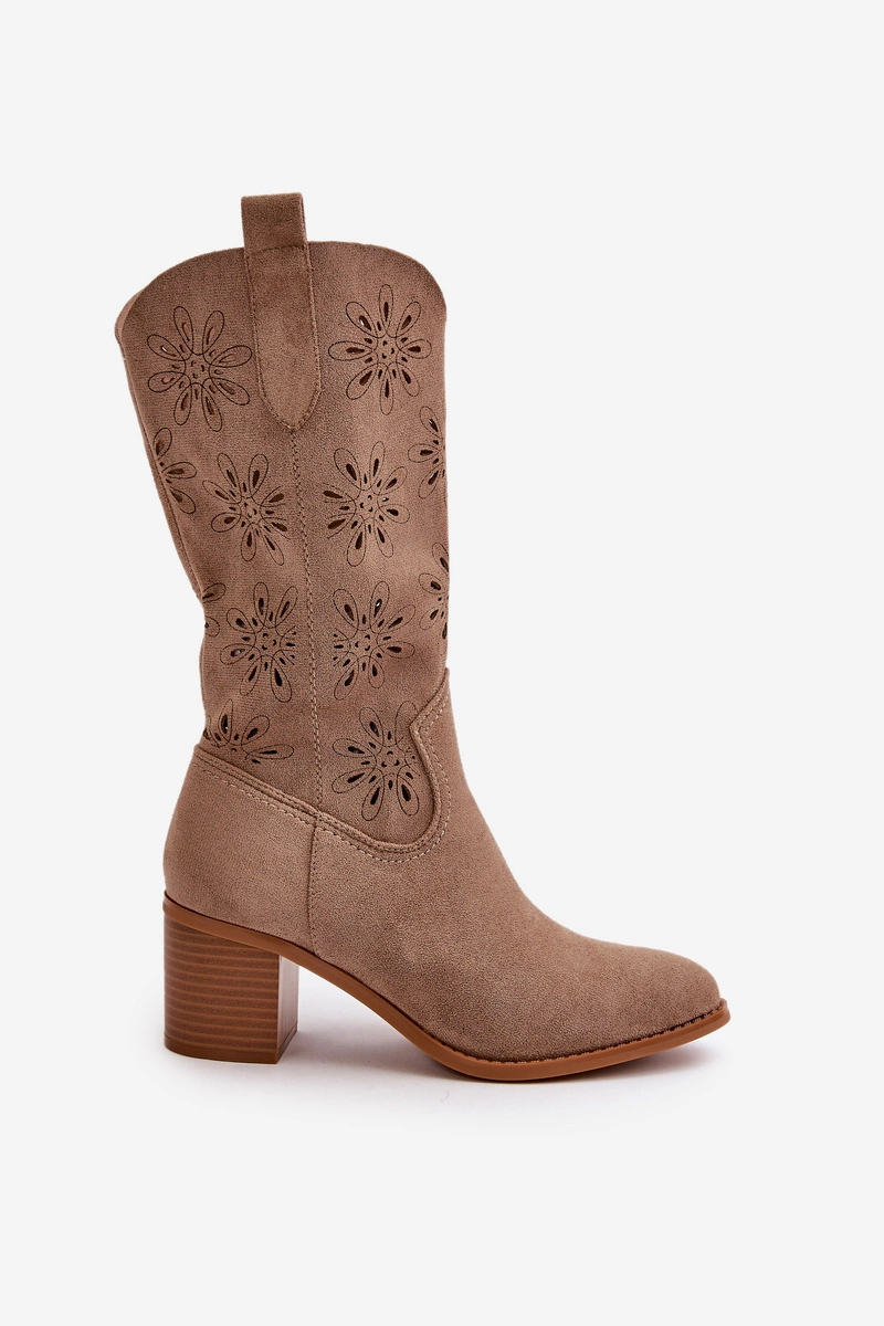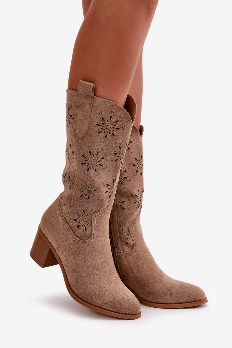 Damskie Ażurowe Kozaki Do Połowy Łydki Z Eko Zamszu Beżowe Nevilos