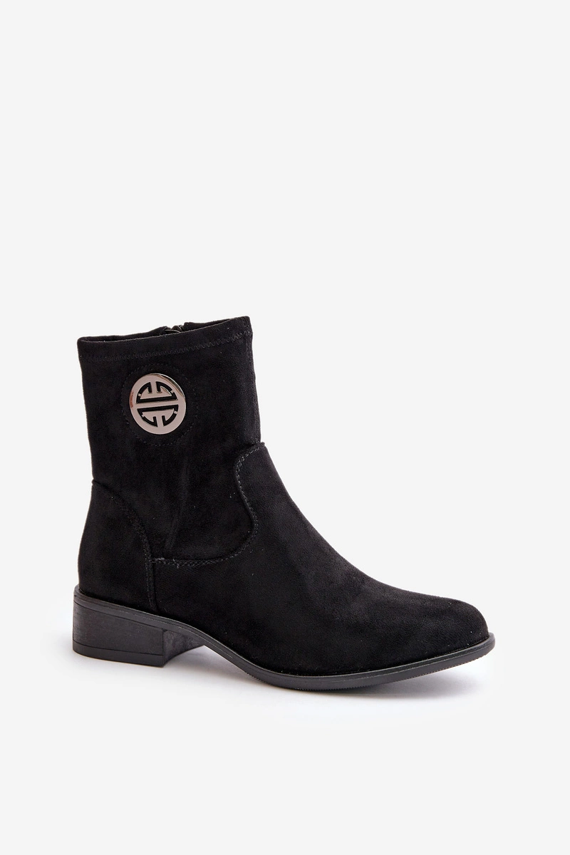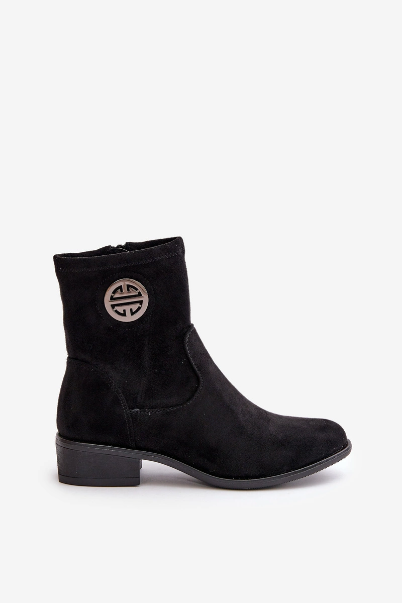 Botki Damskie Zapinane Na Zamek Z Ozdobnym Detalem Eko Zamszowe Czarne Lerioria