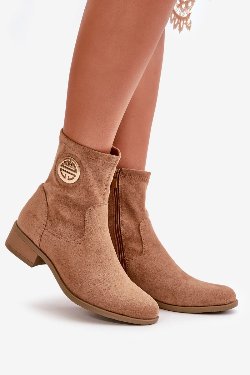 Botki Damskie Zapinane Na Zamek Z Ozdobnym Detalem Eko Zamszowe Beżowe Lerioria