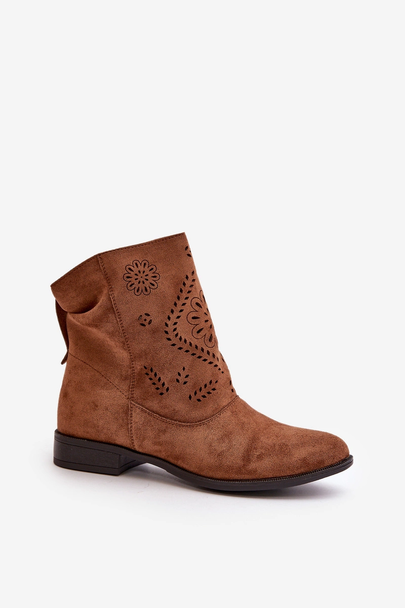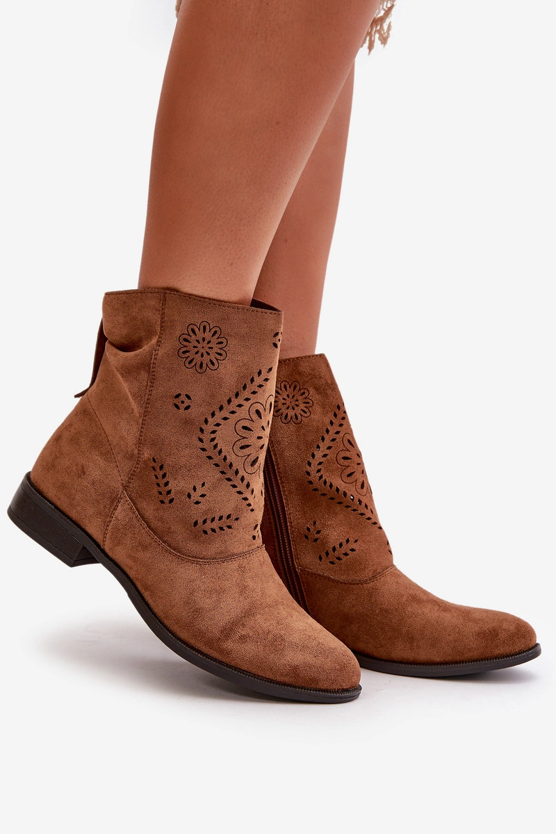 Ażurowe Damskie Niskie Botki Zapinane Na Zamek Brązowe Irinette