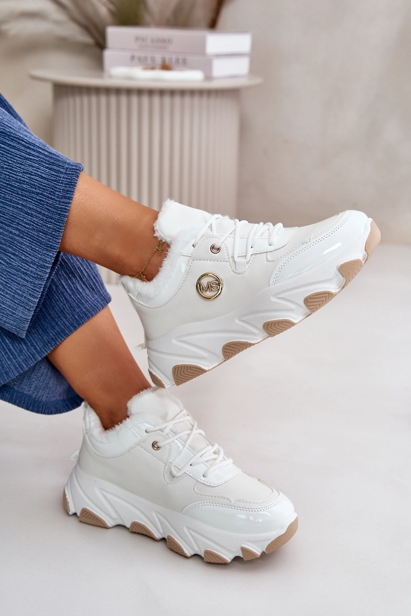 Damskie Buty Sportowe Sznurowane Ocieplane Na Platformie Białe Verioras