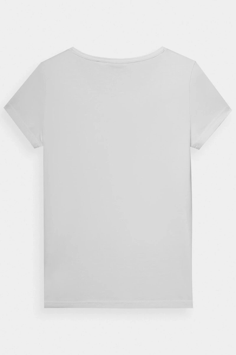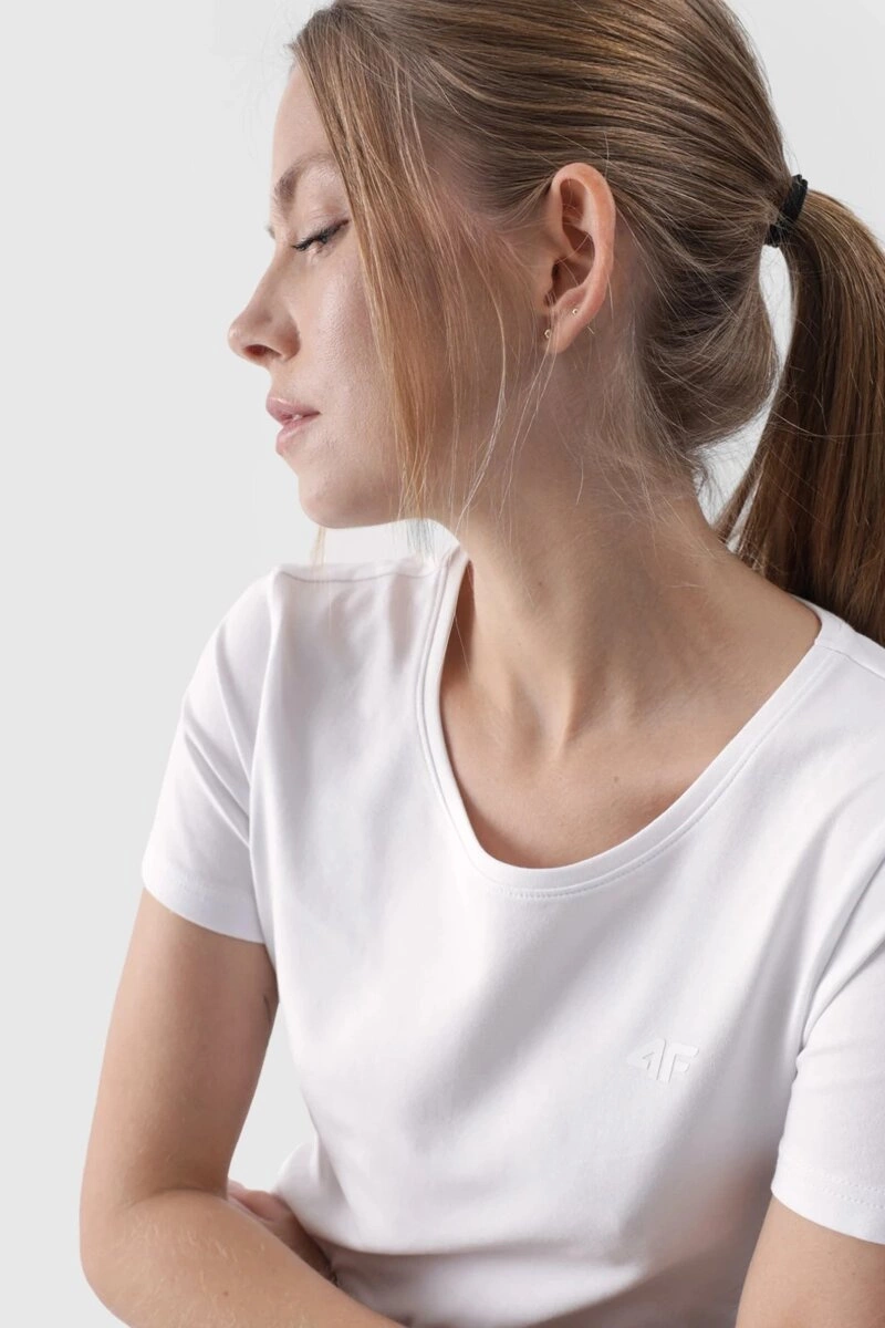 Damski Gładki T-Shirt Z Logo Biały 4F 4FWMM00TTSHF1845-10S