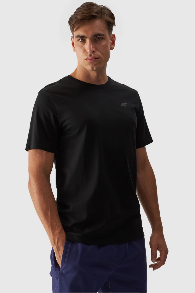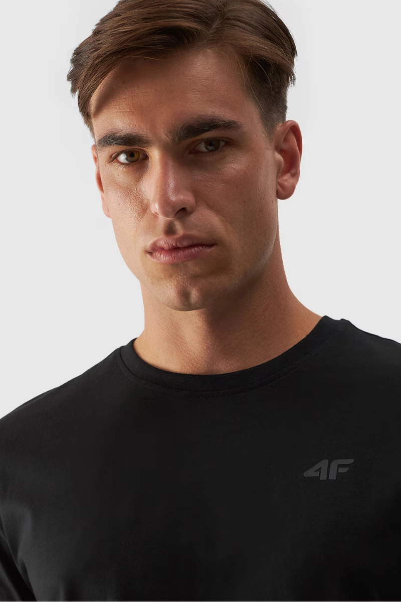 Koszulka Męska Gładka Z Logo Czarna 4F 4FWMM00TTSHM1843-20S