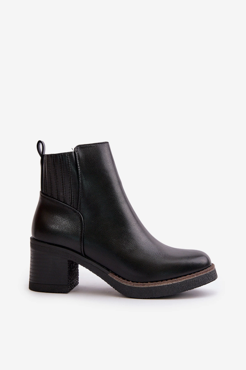 Ocieplane Botki Damskie Na Słupku Eko Skórzane Czarne Irittes