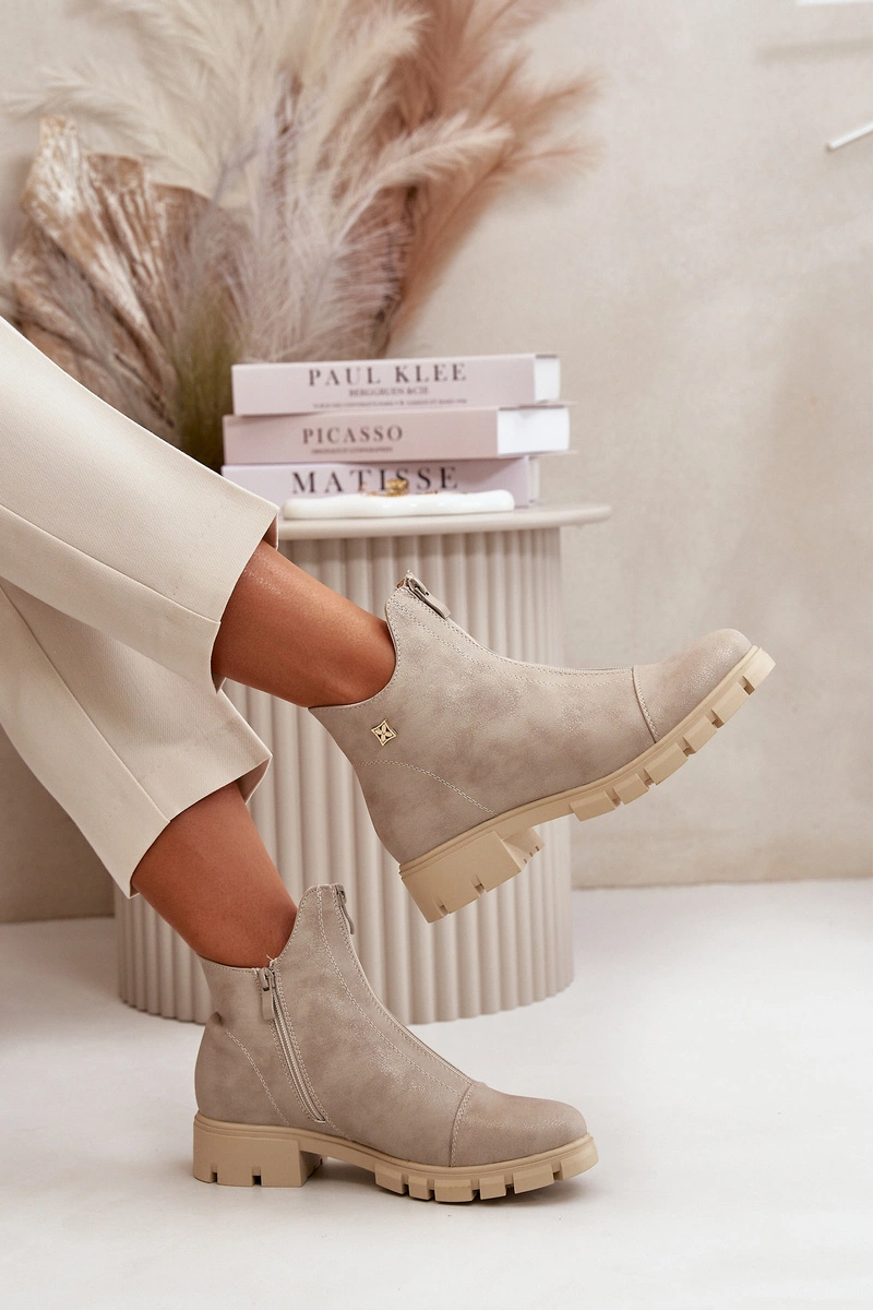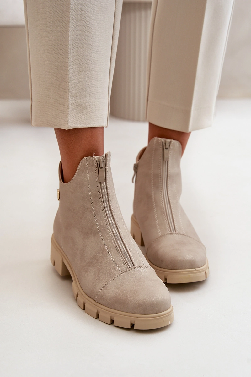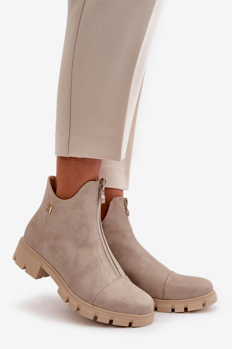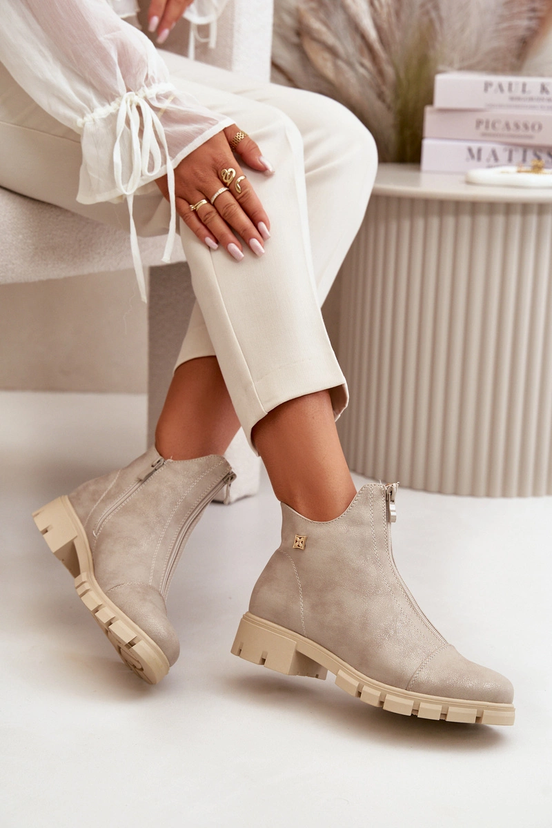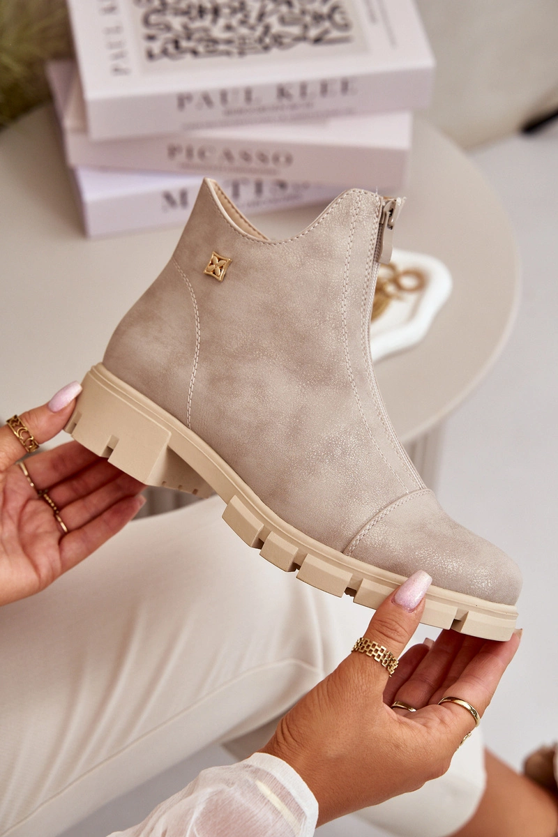 Ocieplane Botki Damskie Z Przetarciami Eko Skórzane Złote Verietta