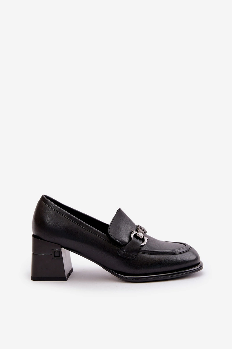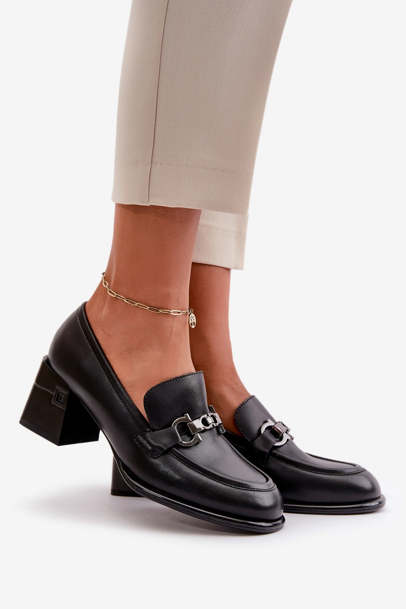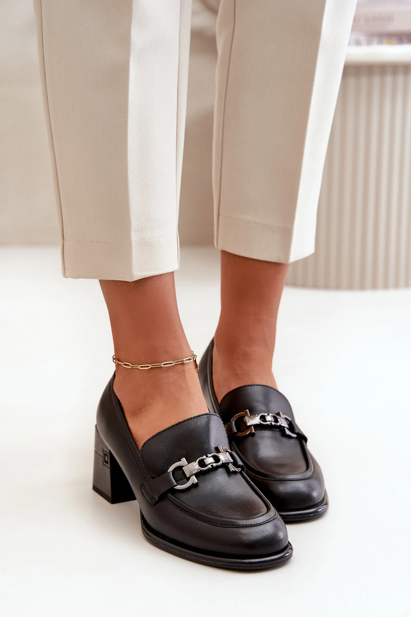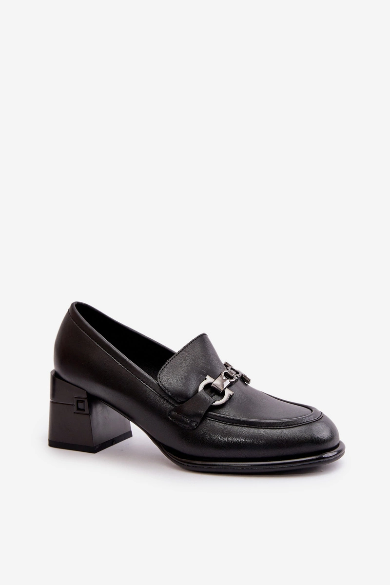 Eleganckie Skórzane Półbuty Damskie Na Słupku Czarne Vinceza 91116