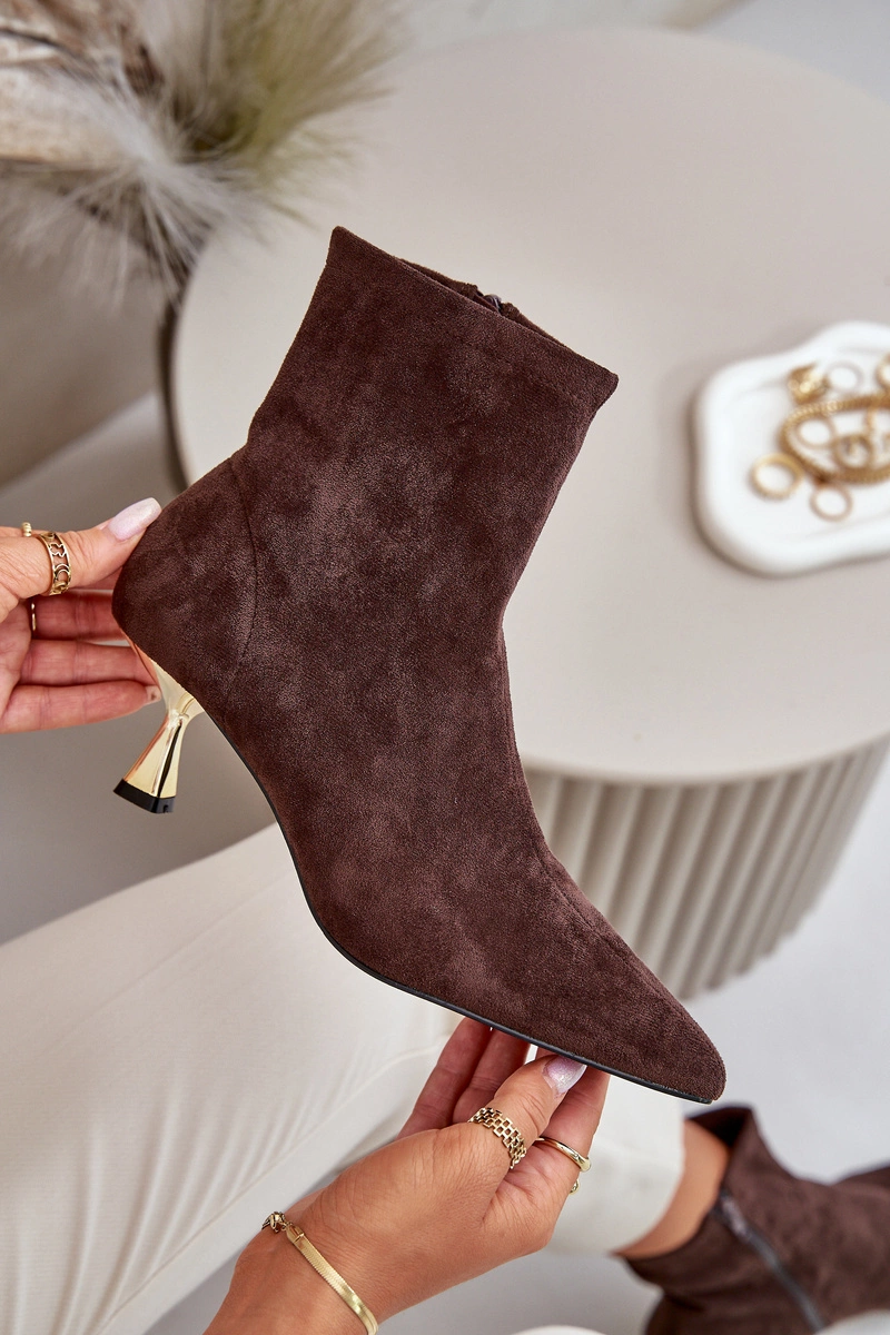 Botki Damskie Na Szpilce Eko Zamszowe Z Noskami W Szpic Brązowe Irithare