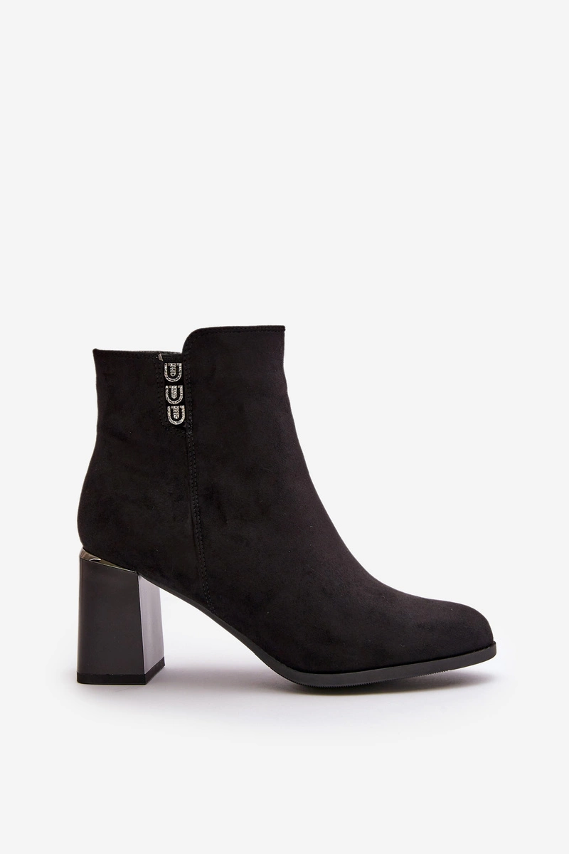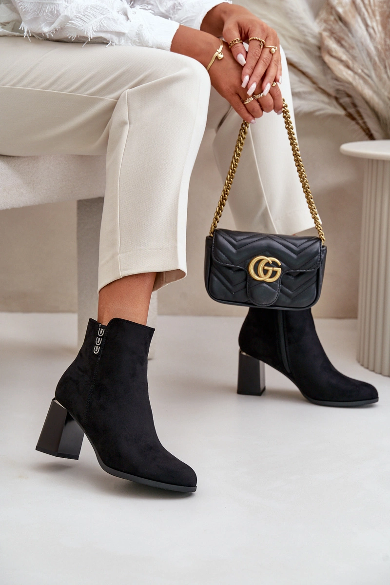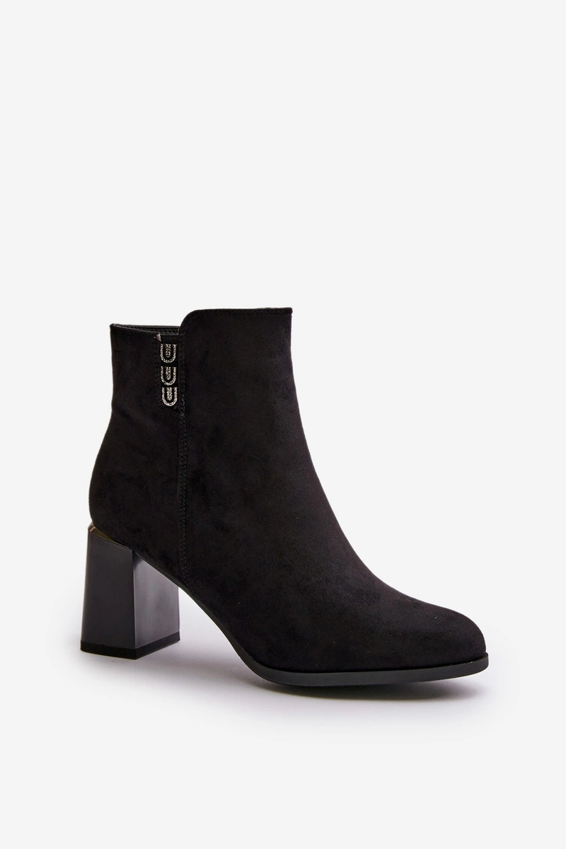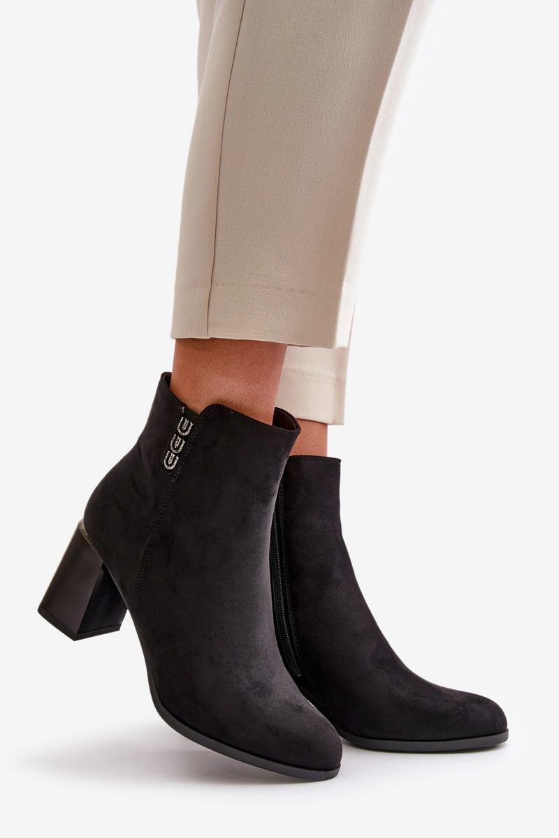 Ocieplane Eko Zamszowe Botki Damskie Na Słupku Zapinane Na Zamek Czarne Erillia