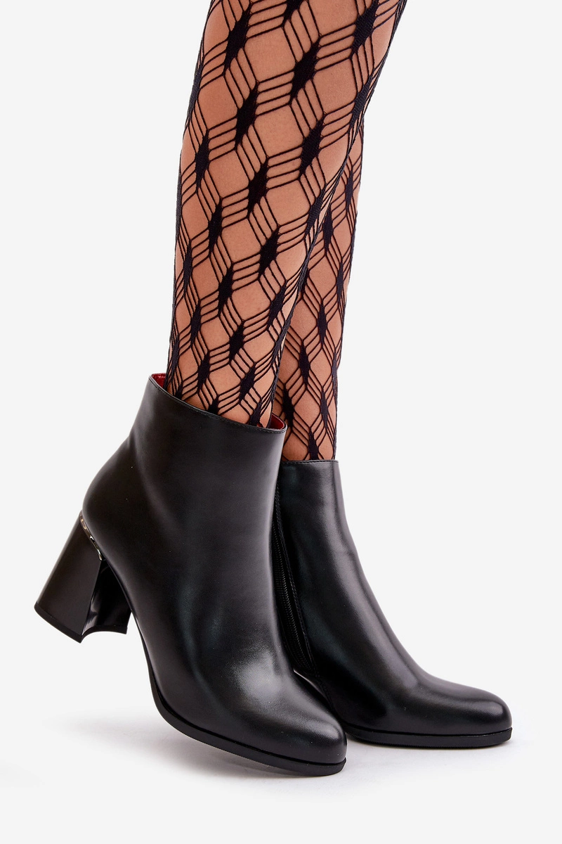 Gładkie Botki Damskie Na Słupku Z Eko Skóra Ocieplane Czarne Milisea