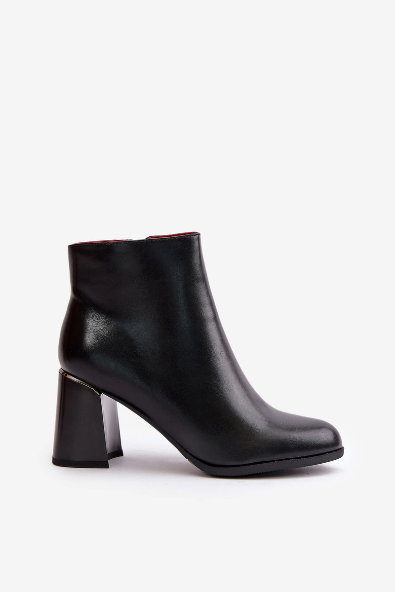 Damskie botki wykonane z eko skóry. Obcas słupek zapewnia stabilność i komfort chodzenia, jednocześnie dodając kilka centymetrów wzrostu i podkreślając sylwetkę. Zapięcie na zamek gwarantuje łatwe zakładanie i zdejmowanie butów, co jest szczególnie praktyczne w codziennym użytkowaniu. Wnętrze butów ocieplone jest przyjemnym w dotyku kocem obuwniczym, który chroni stopy przed zimnem, zapewniając im ciepło i komfort nawet w najchłodniejsze dni. Przy wyborze rozmiaru prosimy sugerować się tabelą rozmiarów.