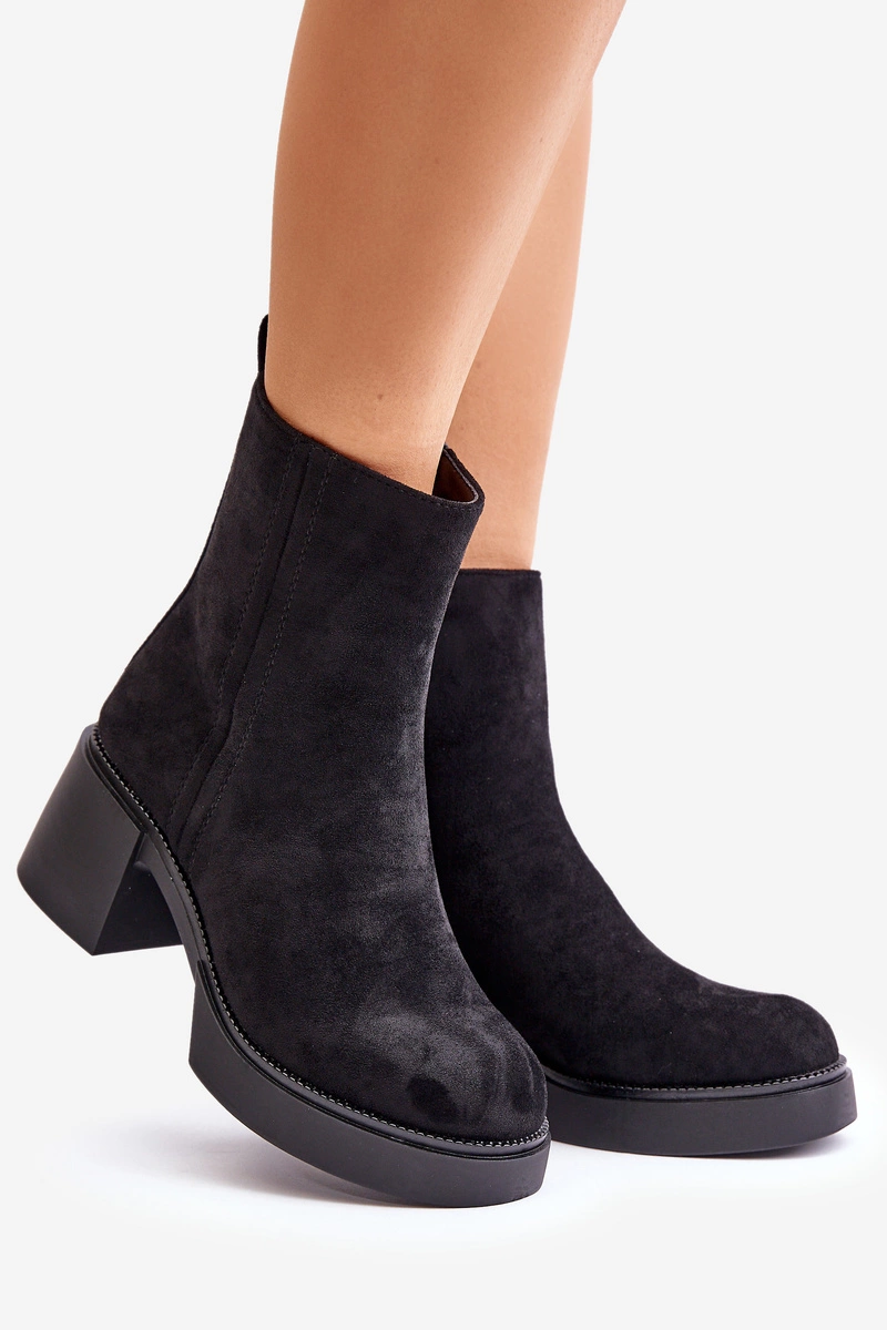 Eko Zamszowe Damskie Botki Na Słupku Ocieplane Czarne Meriluna