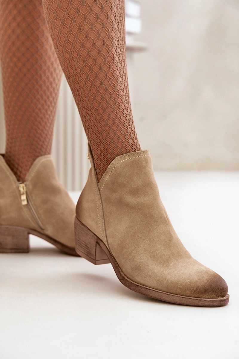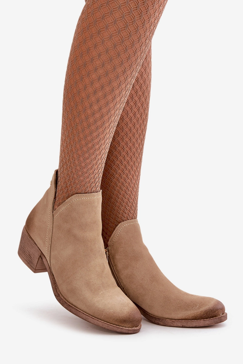 Zazoo 60475 Zamszowe Botki Damskie Na Niskim Obcasie Ocieplane Beżowe