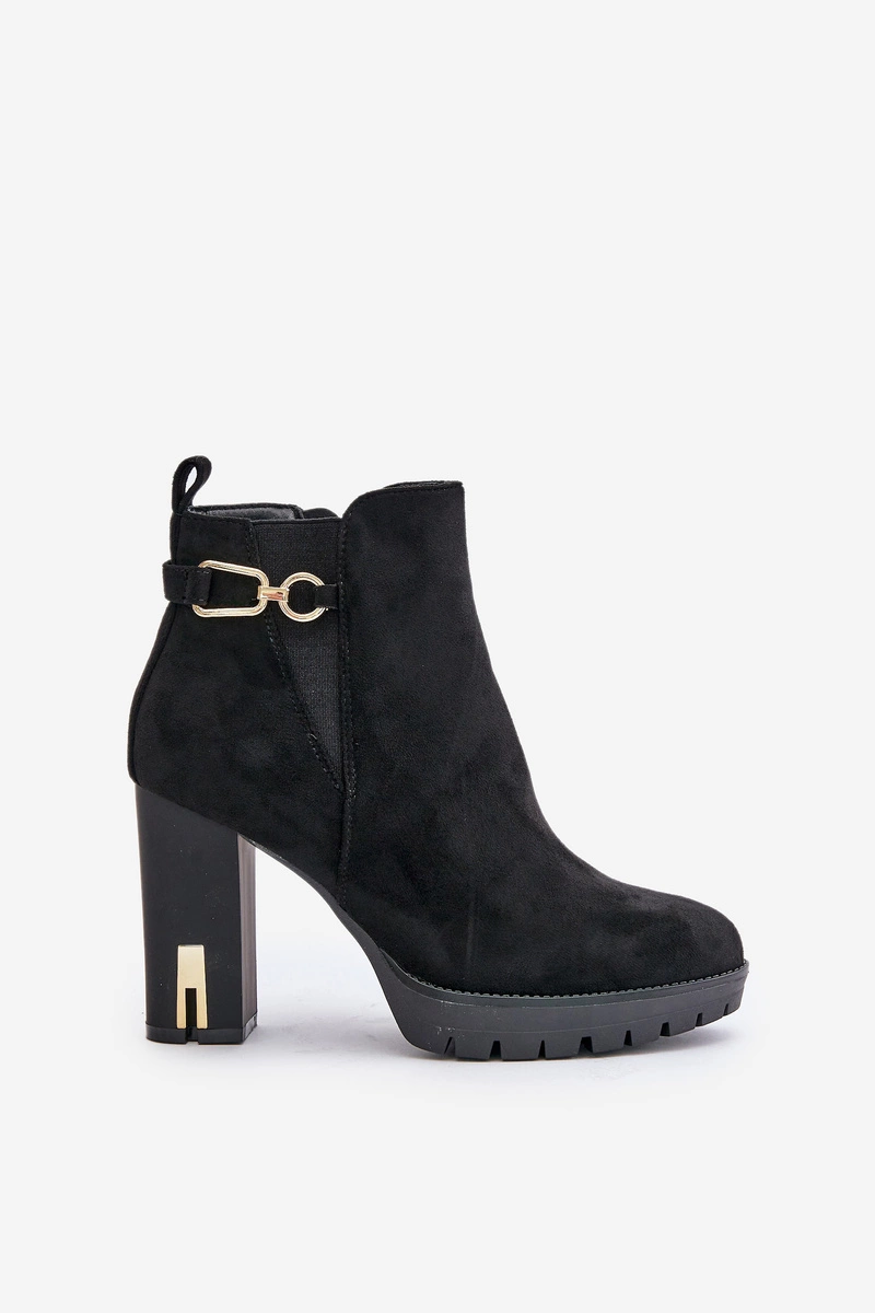 Ocieplane Botki Damskie Na Wysokim Obcasie Słupku Czarne Terisanna