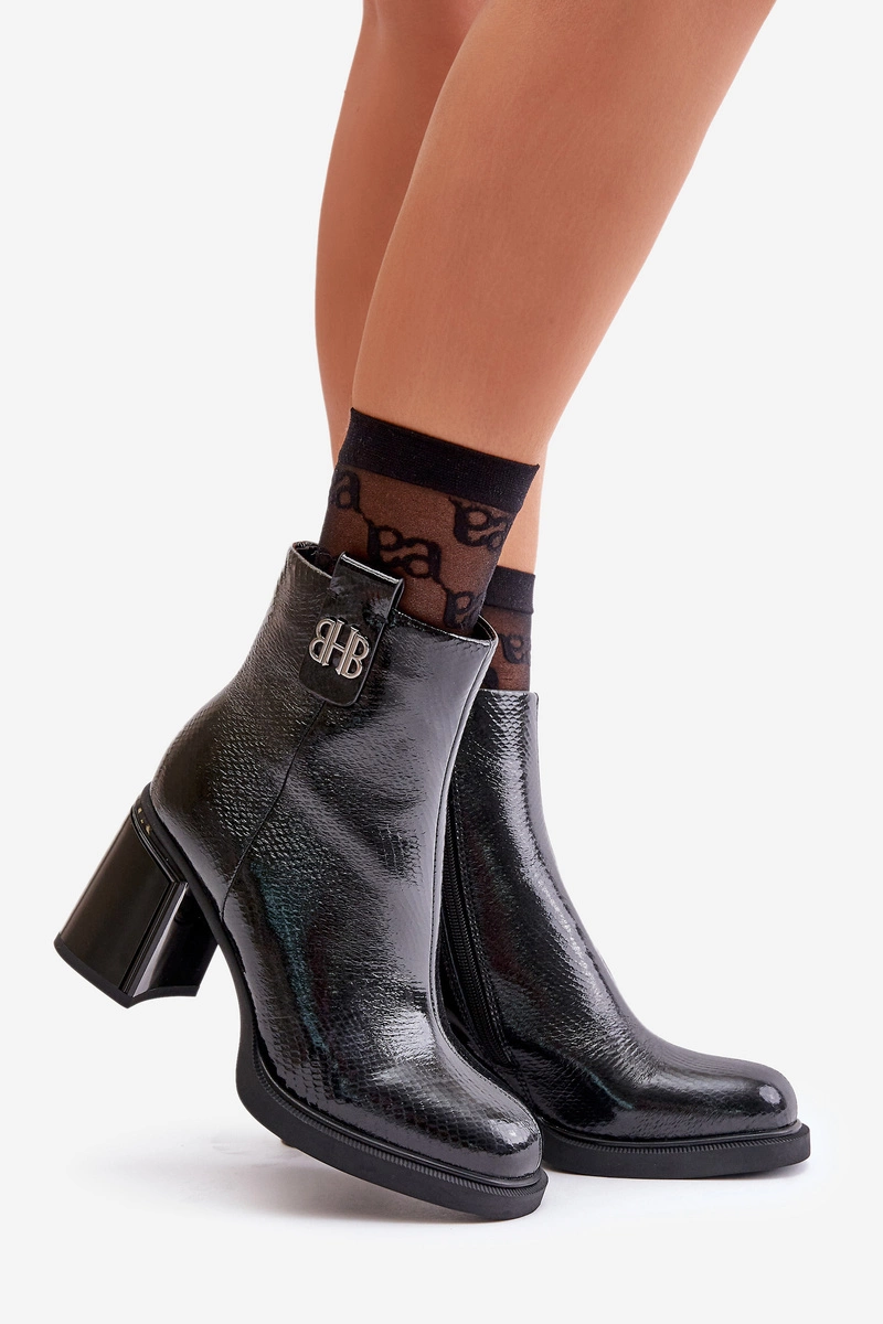 Wężowe Botki Damskie Na Słupku Skóra Naturalna Czarne Vinceza 66670
